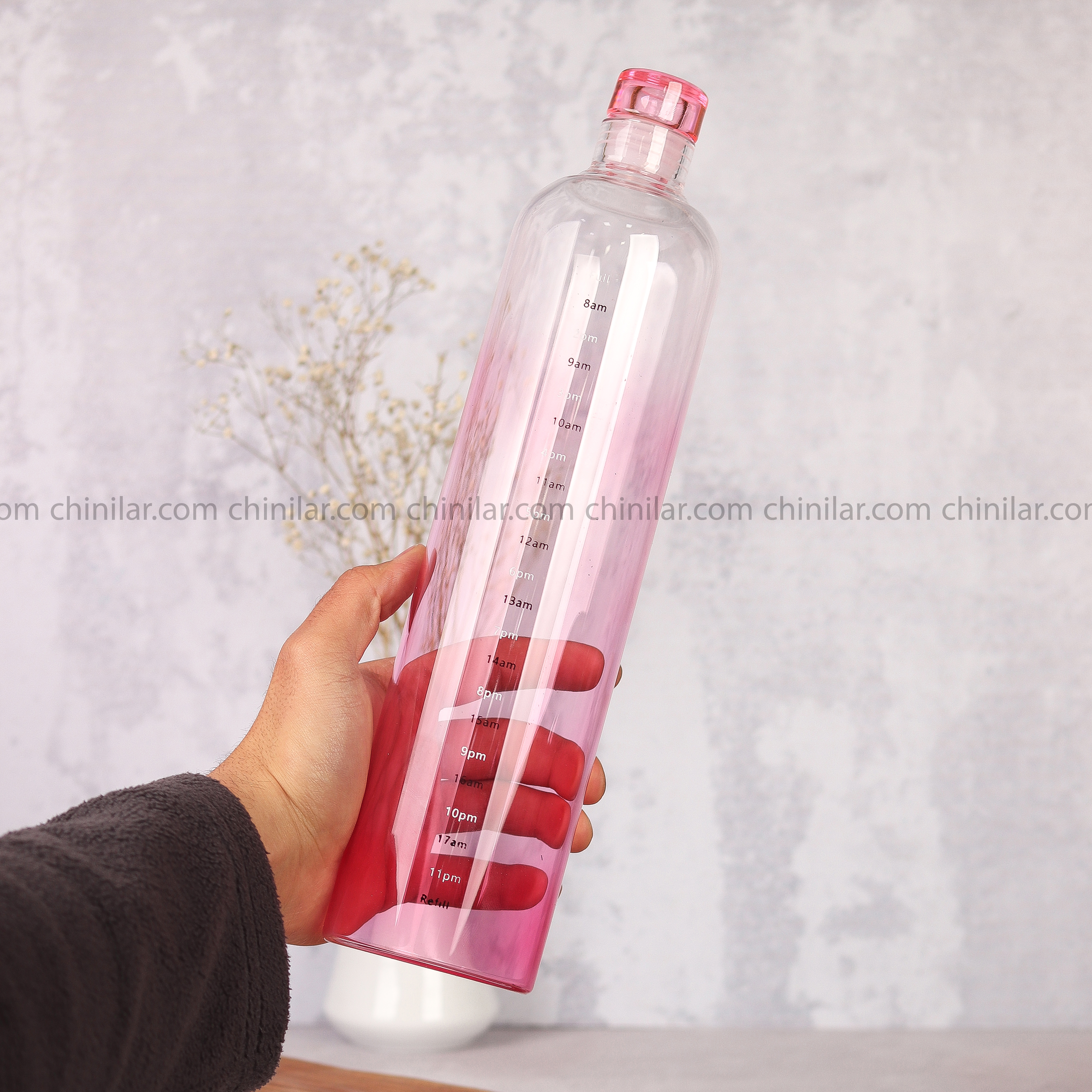 وجود برچسب تایمدار روی بدنه بطری، نوشیدن منظم آب را به یک عادت سالم تبدیل میکند. این ویژگی کمک میکند میزان مصرف آب روزانه را بهتر مدیریت کنید؛ چه در محل کار باشید، چه در باشگاه یا خانه.