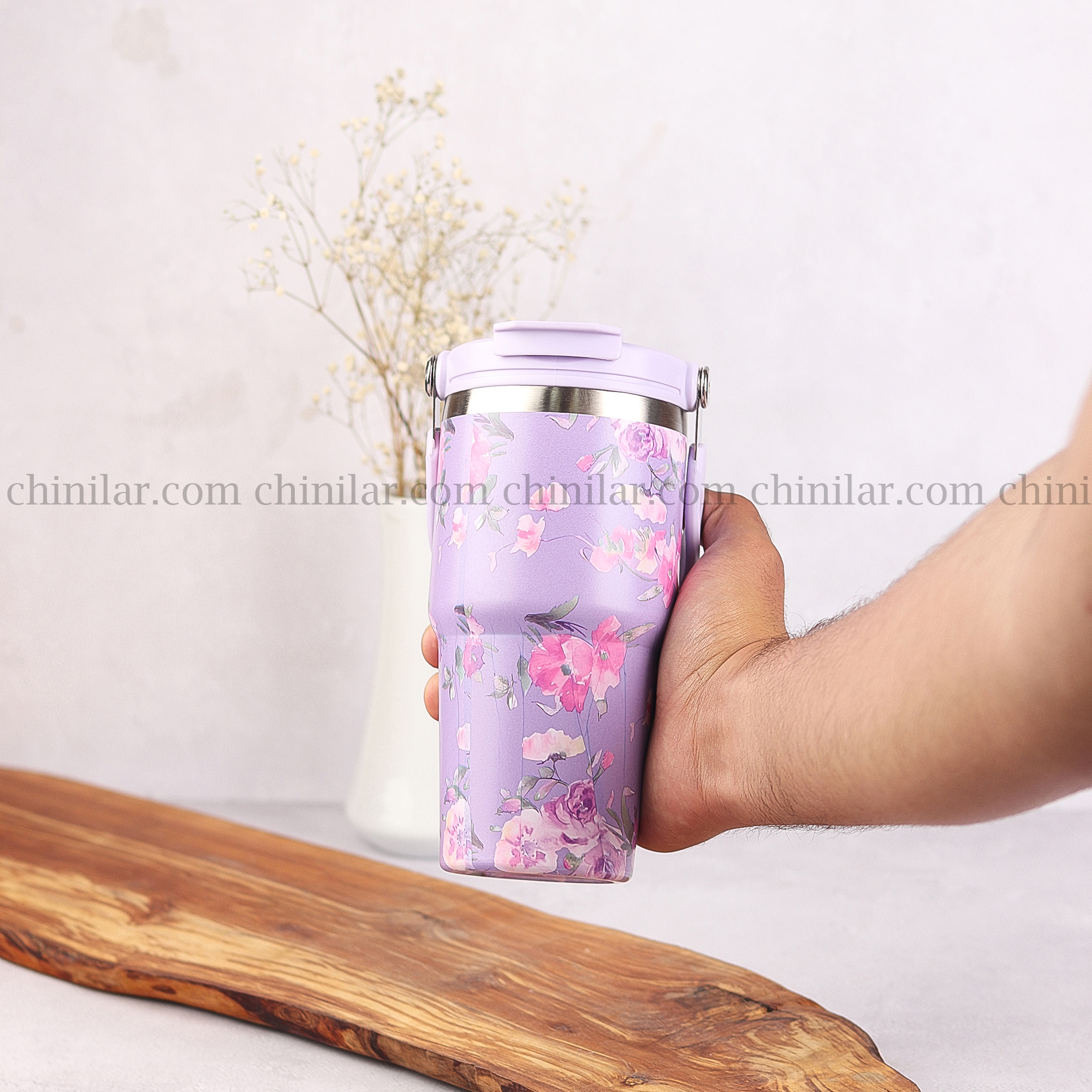 ماگ سفری مدل 5033 با ظرفیت 600 میلیلیتر و طراحی گلگلی بنفش و سفید، انتخابی بینقص برای کسانیست که به ظاهر، کیفیت و کارایی اهمیت میدهند.