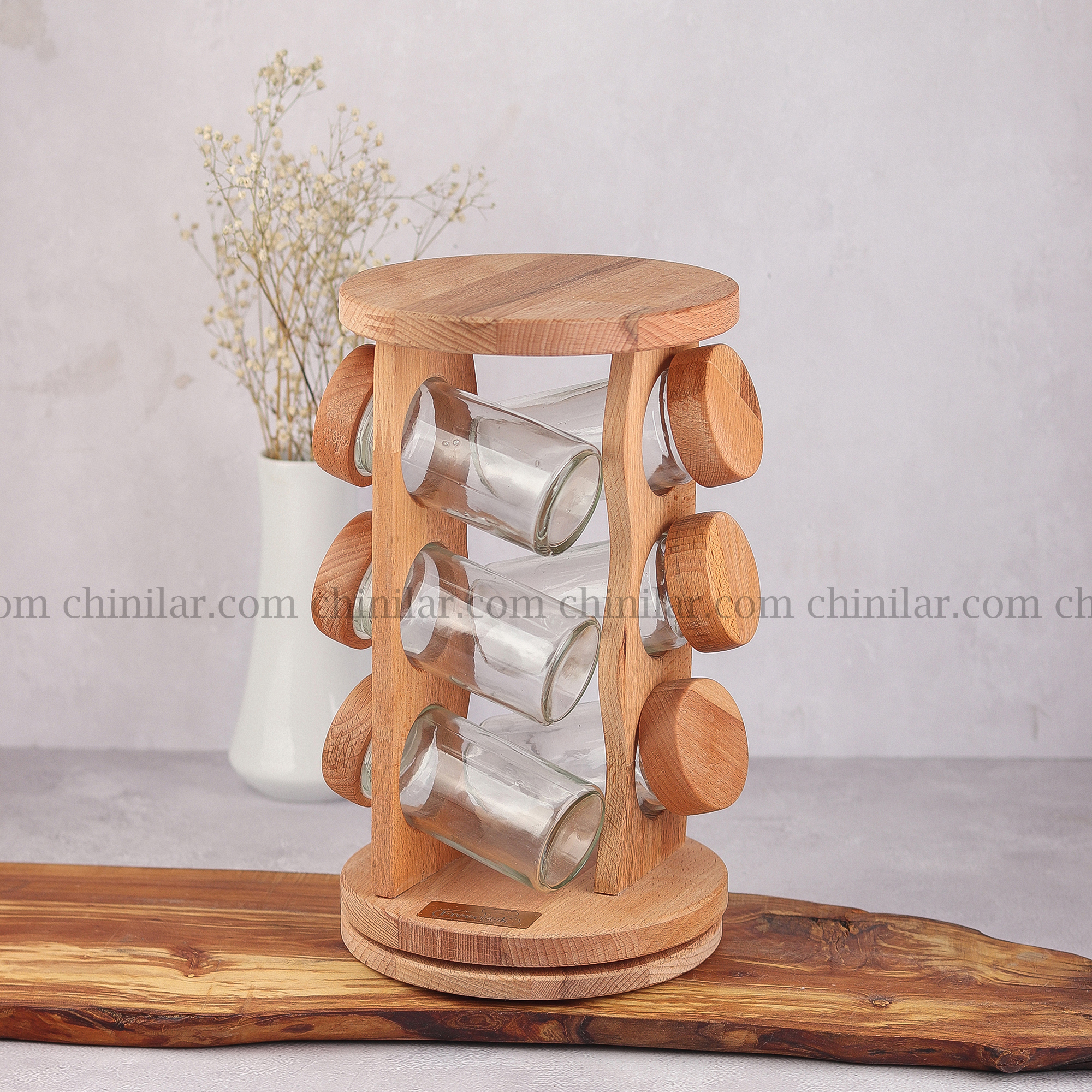استند چوبی چرخان با دسترسی سریع به همه ادویهها 🔄