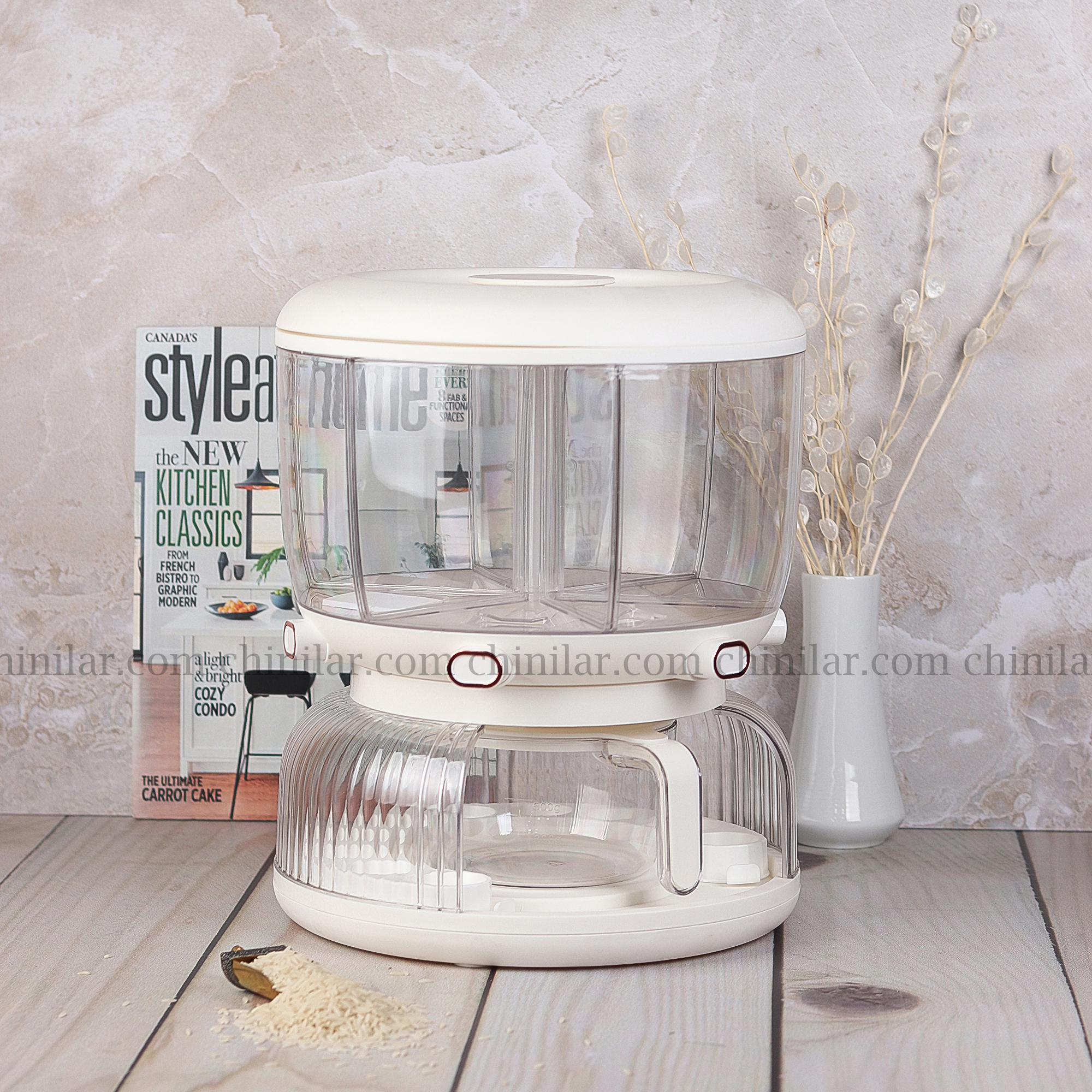 با طراحی مدرن و بدنهی مقاوم پلاستیکی، این مدل دارای ۶ محفظهی مجزا برای نگهداری انواع حبوبات، برنج، جو دوسر، خشکبار و دالهاست.