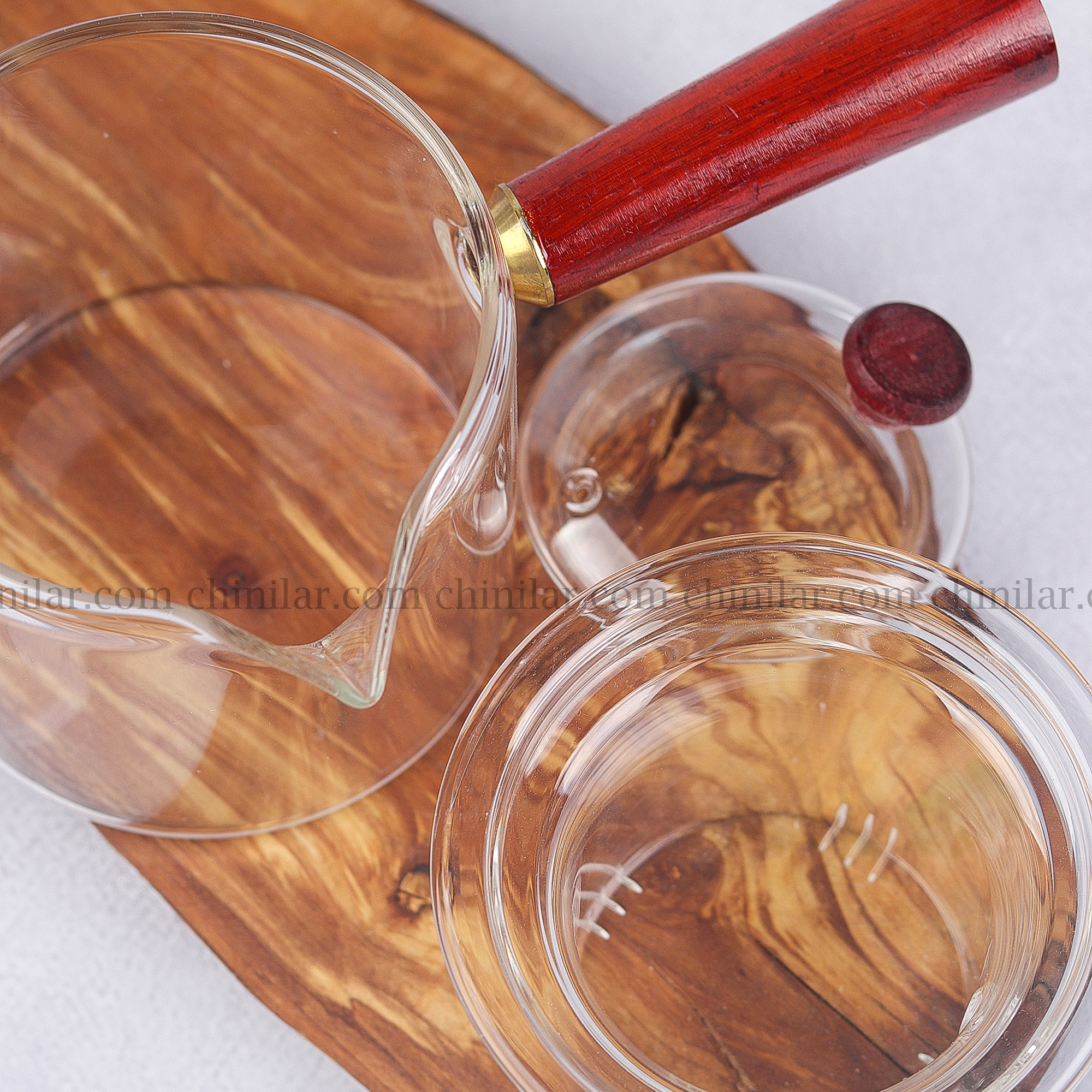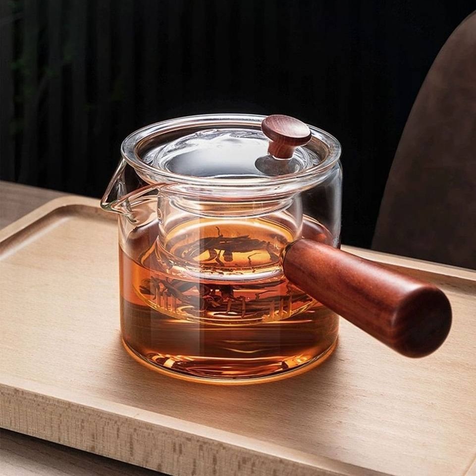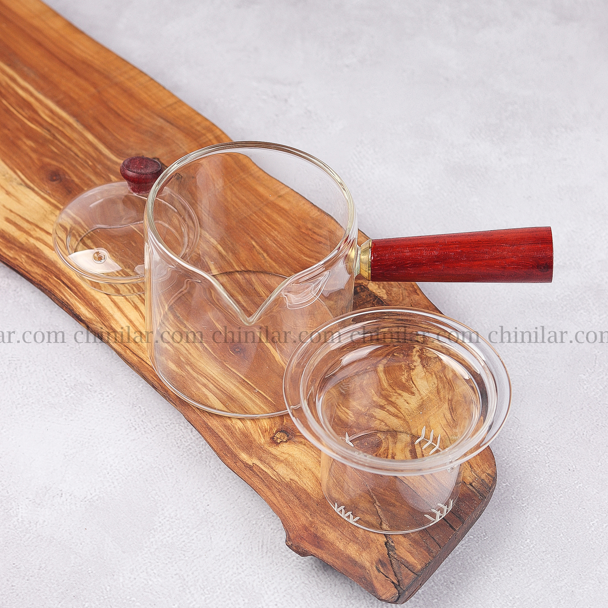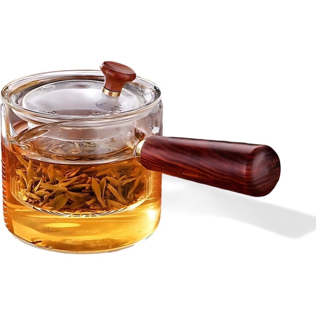 قوری پیرکس چینی، صافی دار و دسته چوبی | شفاف و کاربردی