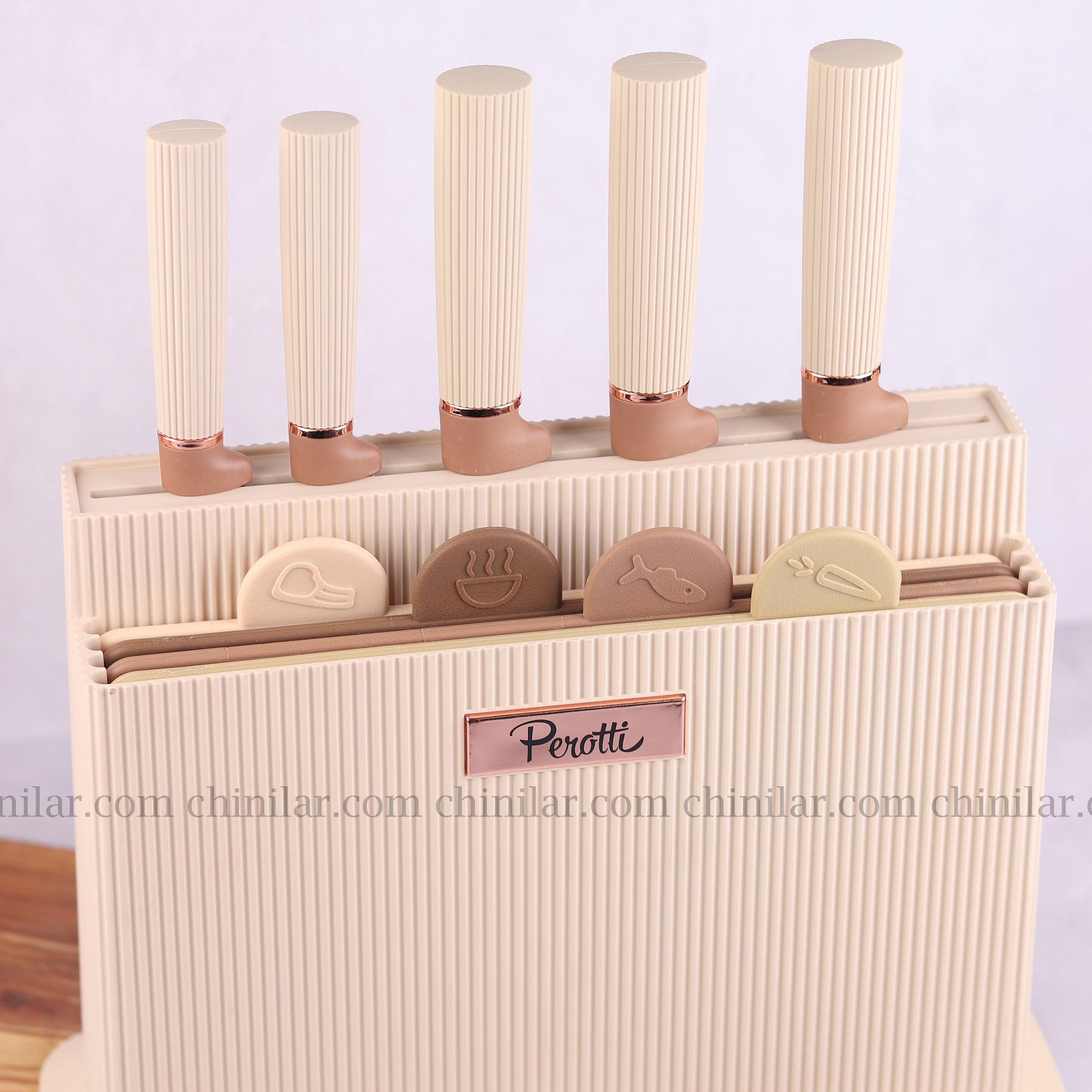 این مجموعه، تمامی ابزارهای مورد نیاز برای برش، ریز کردن و پوستکنی را در اختیار شما قرار میدهد، همراه با استند پلاستیکی مقاوم و زیبا.