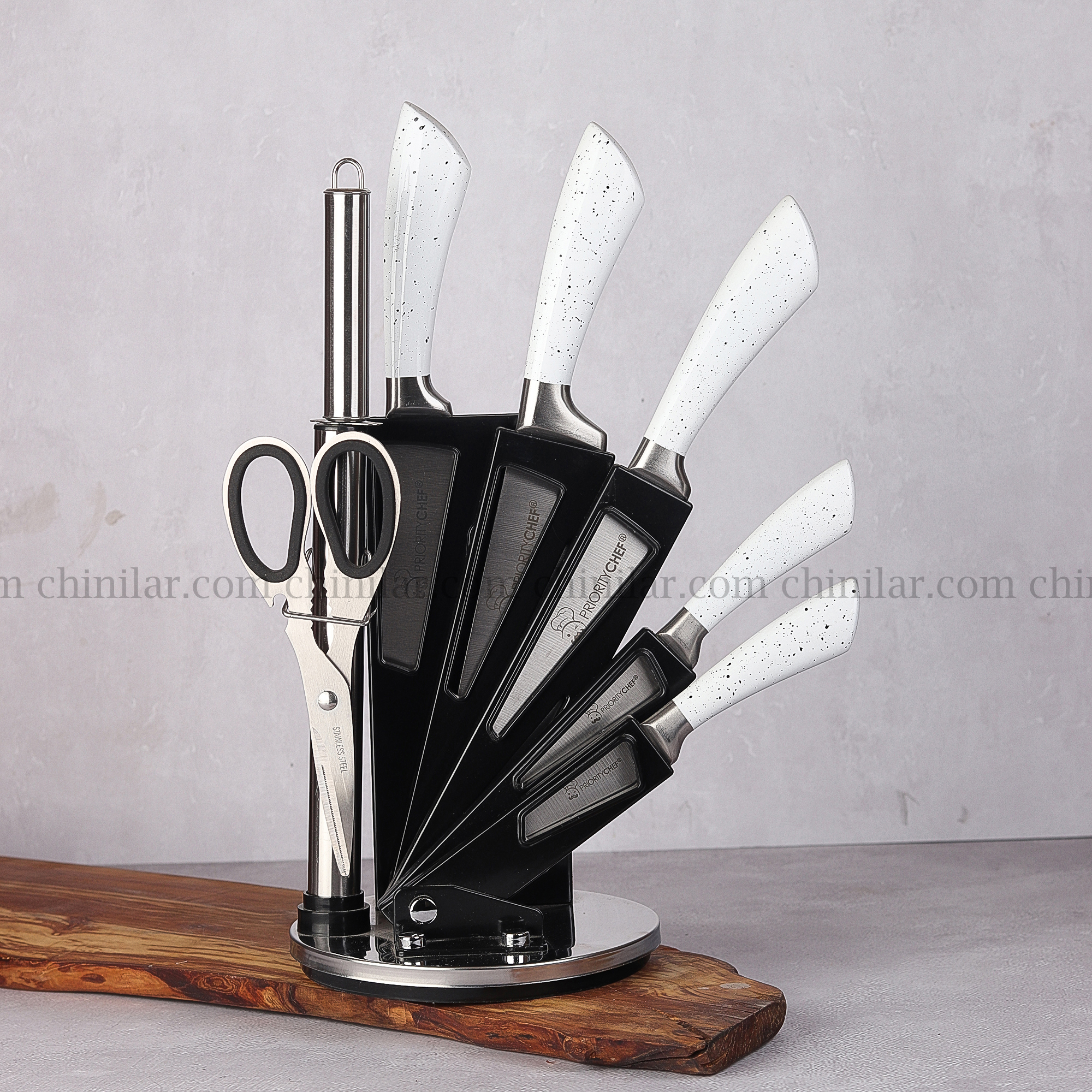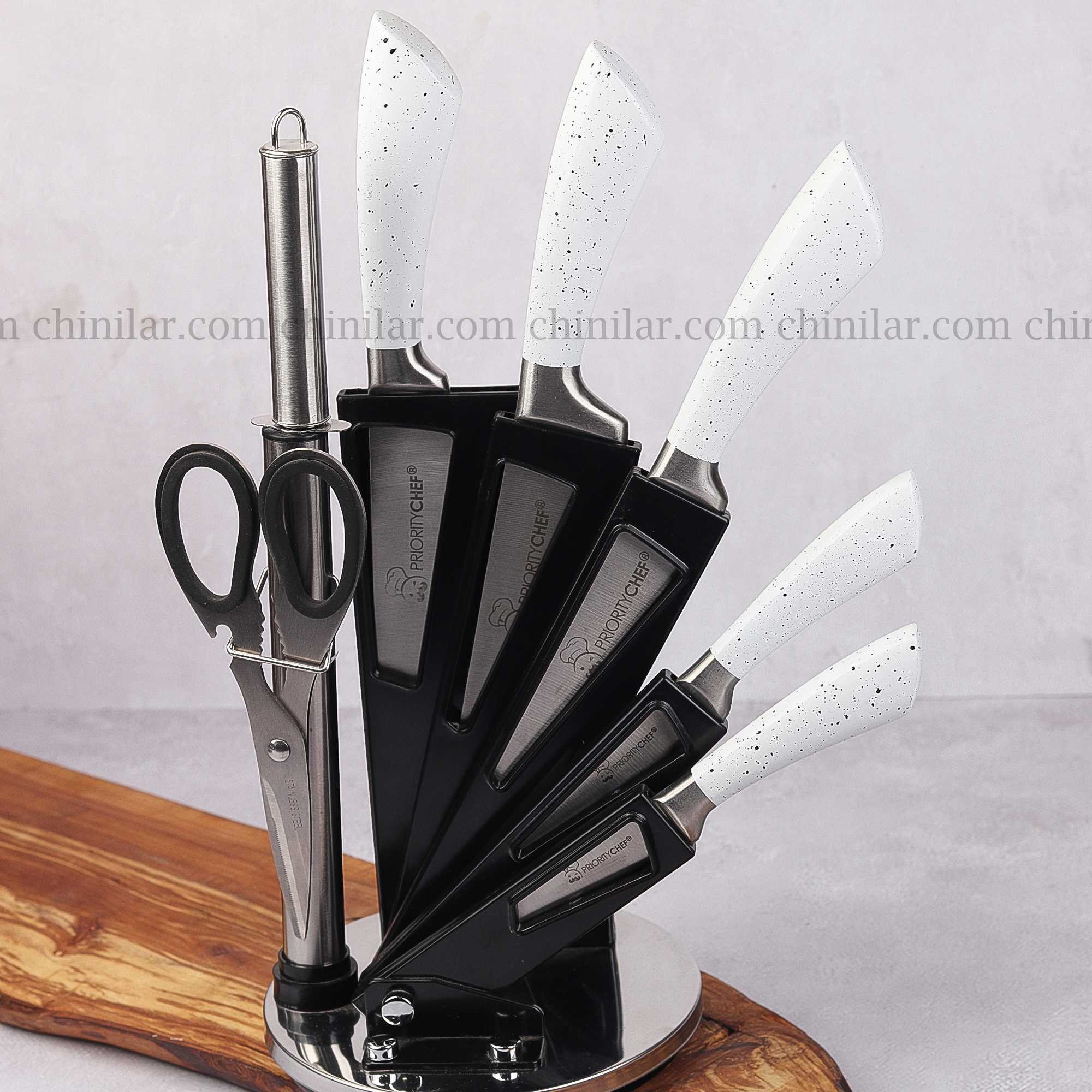 ست چاقو ۸ پارچه  پریوریتی شف چین | کیفیت استیل و طراحی شیک با استند استیل