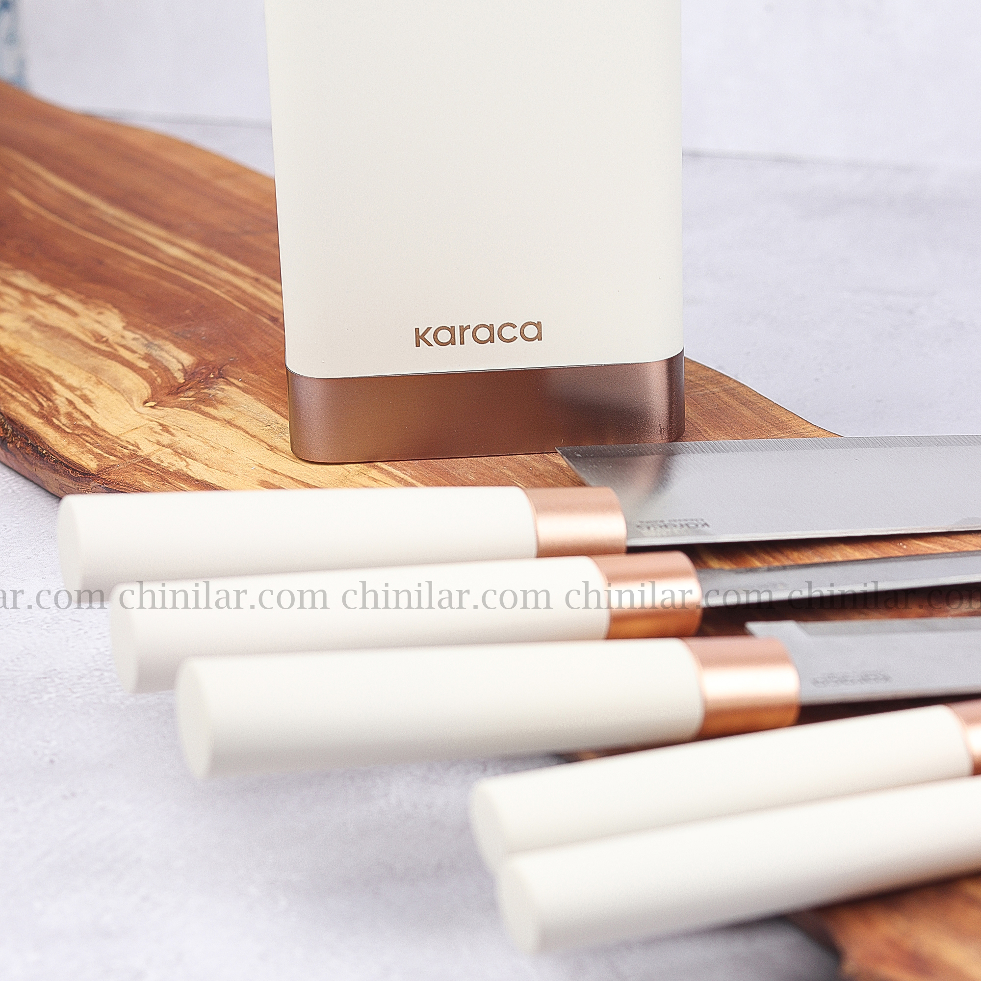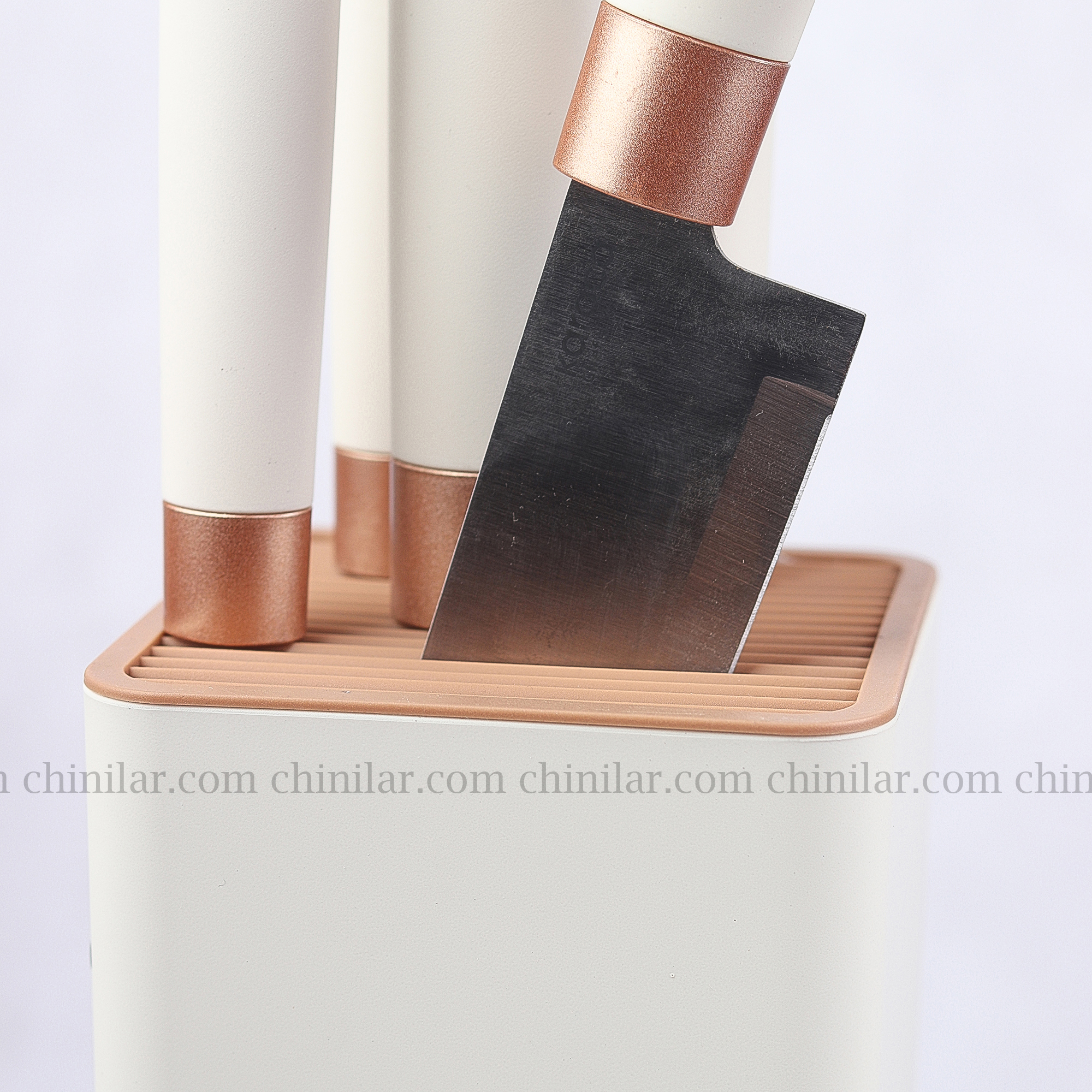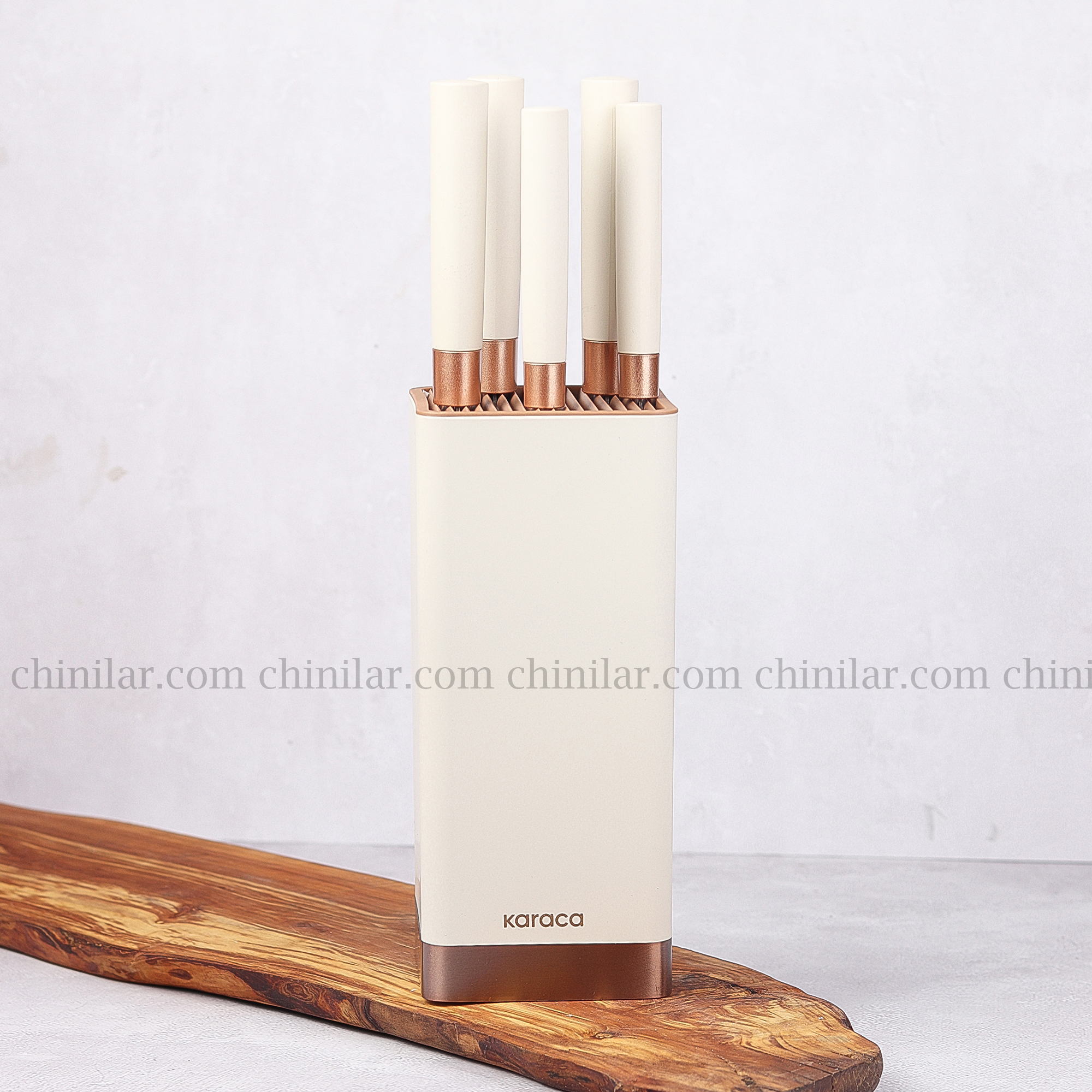 استند پلاستیکی این سرویس با ابعاد 10×10 سانتیمتر و ارتفاع 35 سانتیمتر (با چاقو)، علاوه بر اینکه فضای کمی اشغال میکند، باعث نظمدهی و دسترسی سریع به چاقوها نیز میشود.