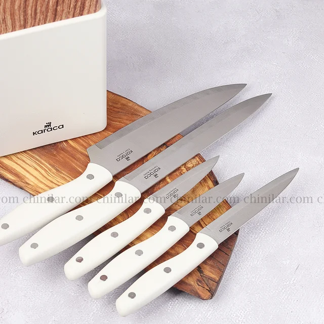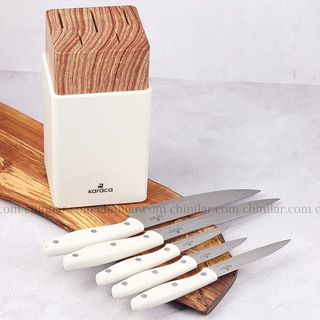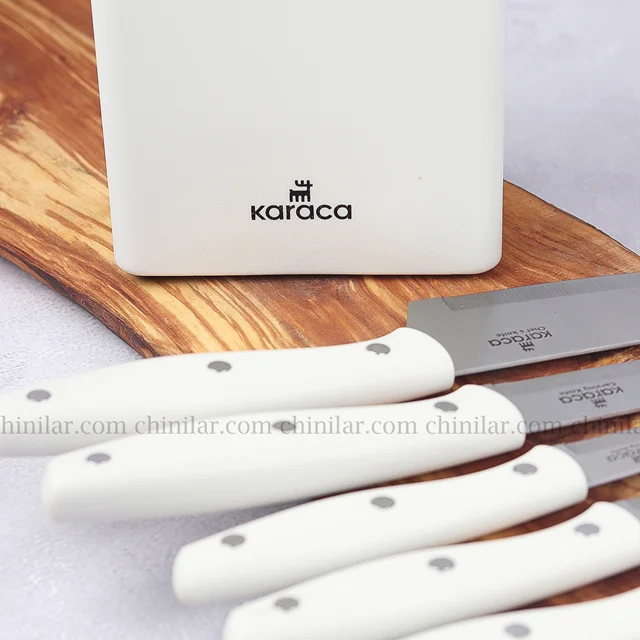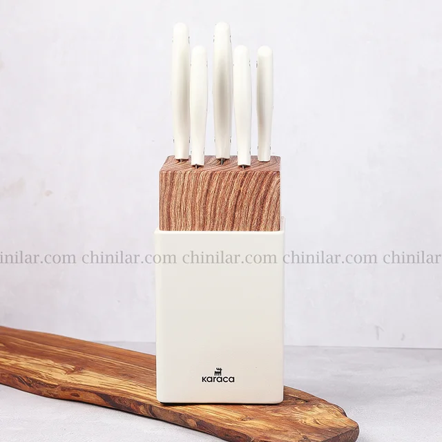 اگر به دنبال یک سرویس چاقوی حرفهای و مدرن هستید، سرویس چاقو کاراجا مدل مسترکات کرمی با طراحی شیک و استند پلاستیک طرح چوب، انتخابی کاربردی و زیبا برای آشپزخانه شماست. این ست با ترکیب ظاهری لوکس و تیغههای فوقالعاده تیز از جنس استیل ضد زنگ ساخته شده تا هم دوام بالایی داشته باشد و هم تجربهای راحت و سریع در آمادهسازی مواد غذایی به شما بدهد.