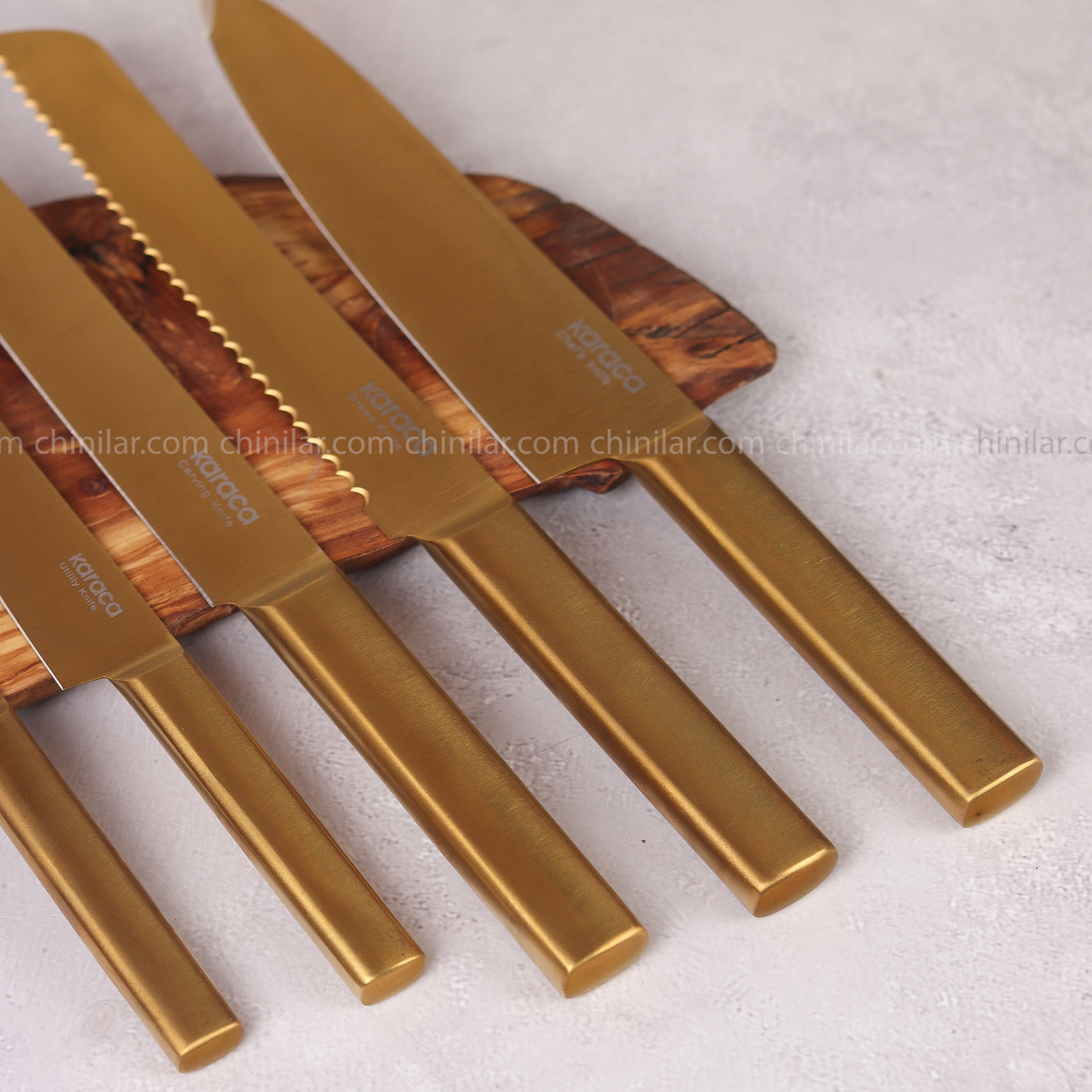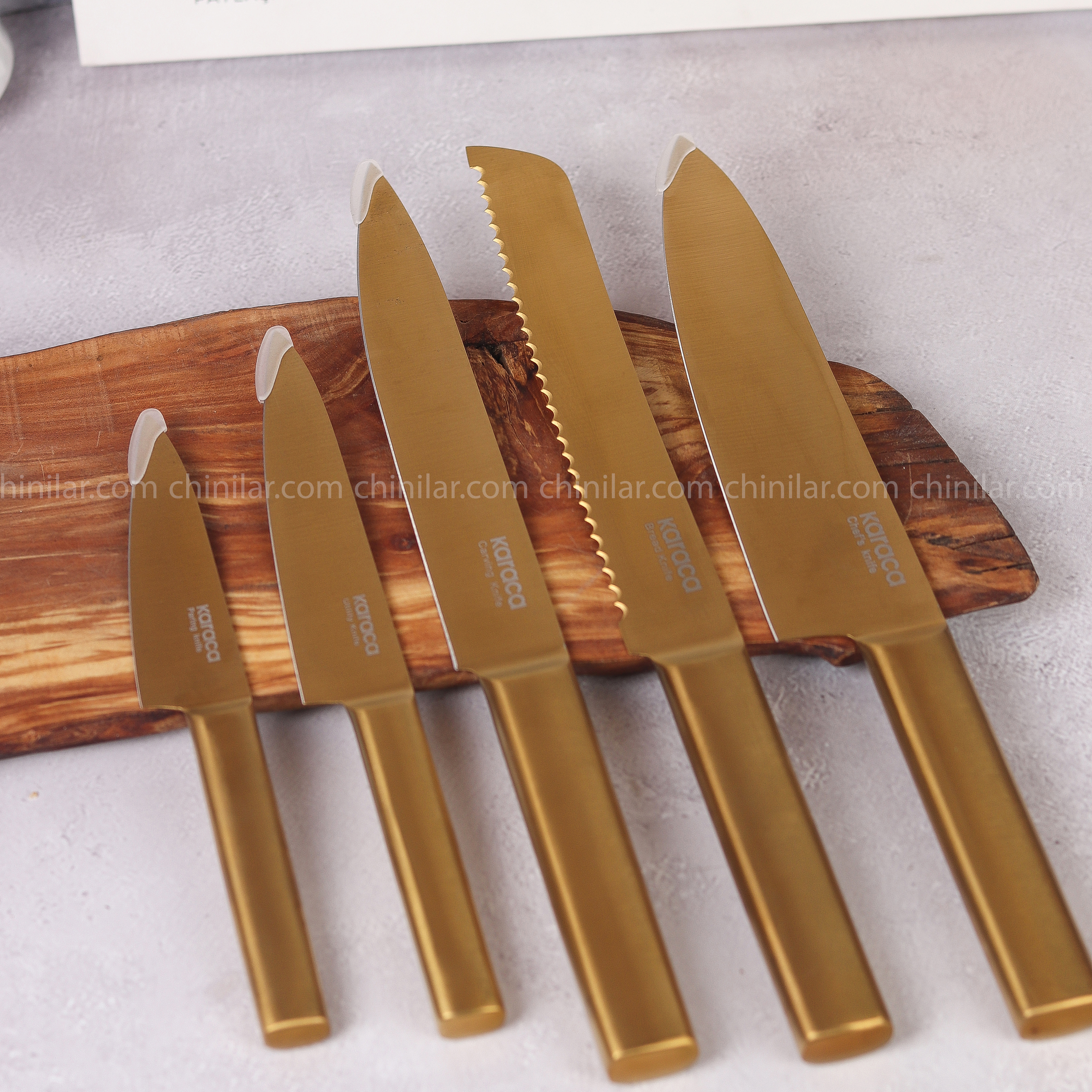 سرویس چاقو ۵ تایی KARACA | تیغه استیل ضد زنگ و طراحی طلایی شیک