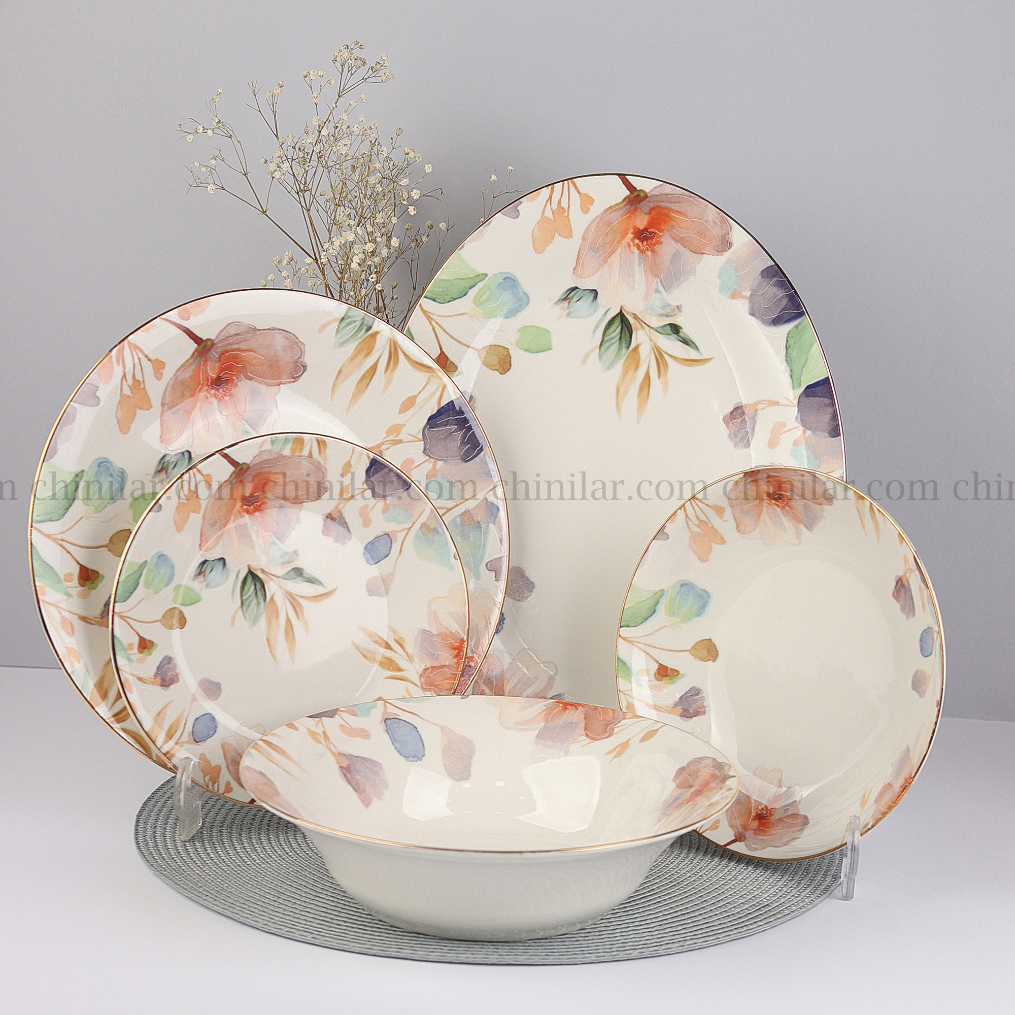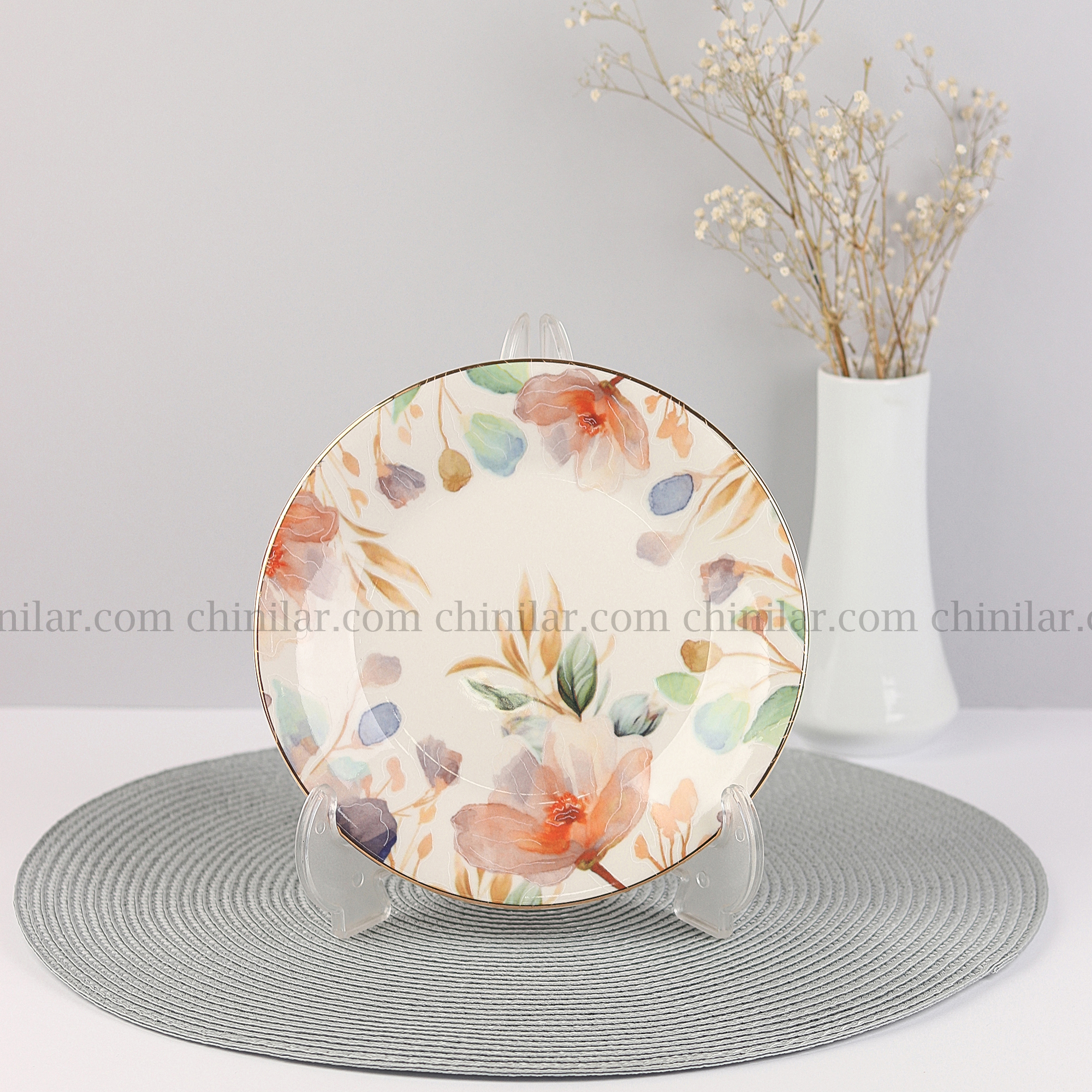 - طراحی گلهای ظریف و حاشیهی طلایی، جلوهای لوکس و منحصربهفرد به میز میبخشد.