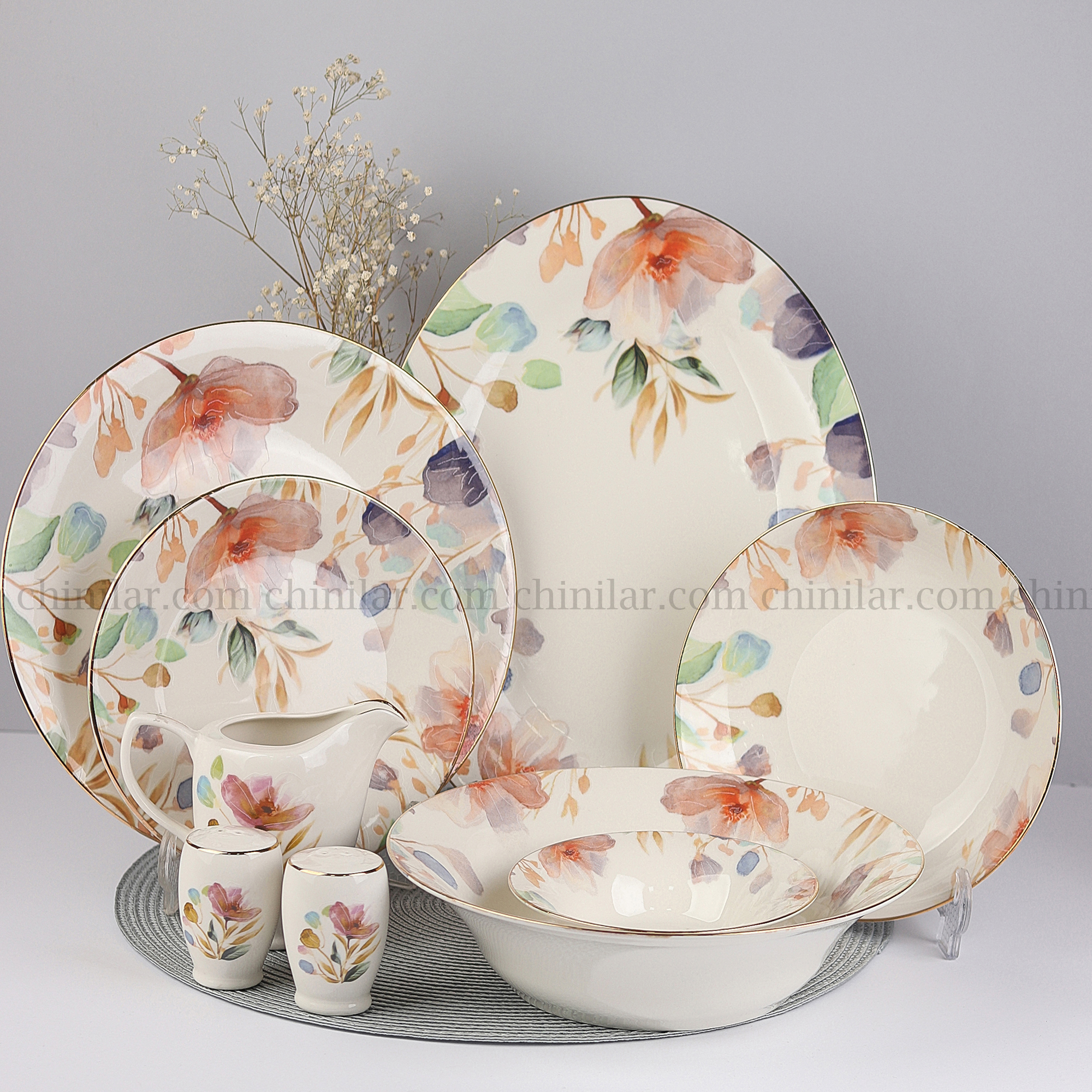 - طراحی نقوش گل با خط طلایی ظریف، جلوهای لوکس و خاص به میز غذا میدهد.