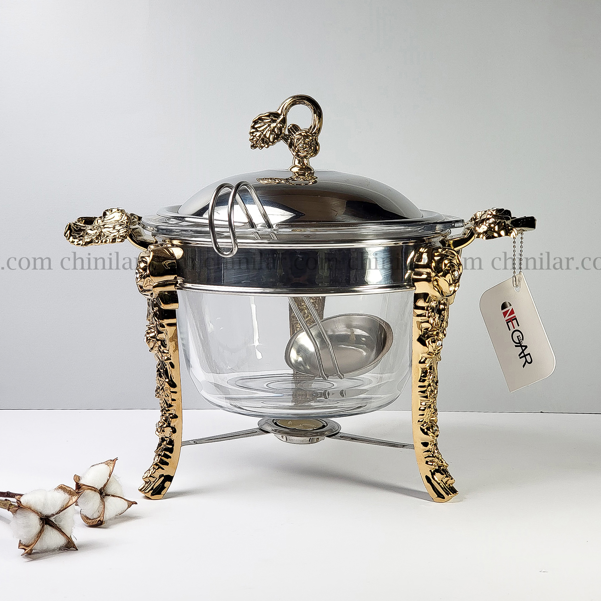 سوفله سوپ خوری نگار با طراحی زیبا و بدنه استیل ضدزنگ، انتخابی لوکس برای پذیرایی از مهمانان است. این محصول با طرح رز و رنگ دسته طلایی، جلوهای خاص به سفره و میز پذیرایی شما میبخشد. دستهها و پایههای ABS علاوه بر استحکام، در برابر حرارت مقاوم هستند و استفادهای ایمن را فراهم میکنند.