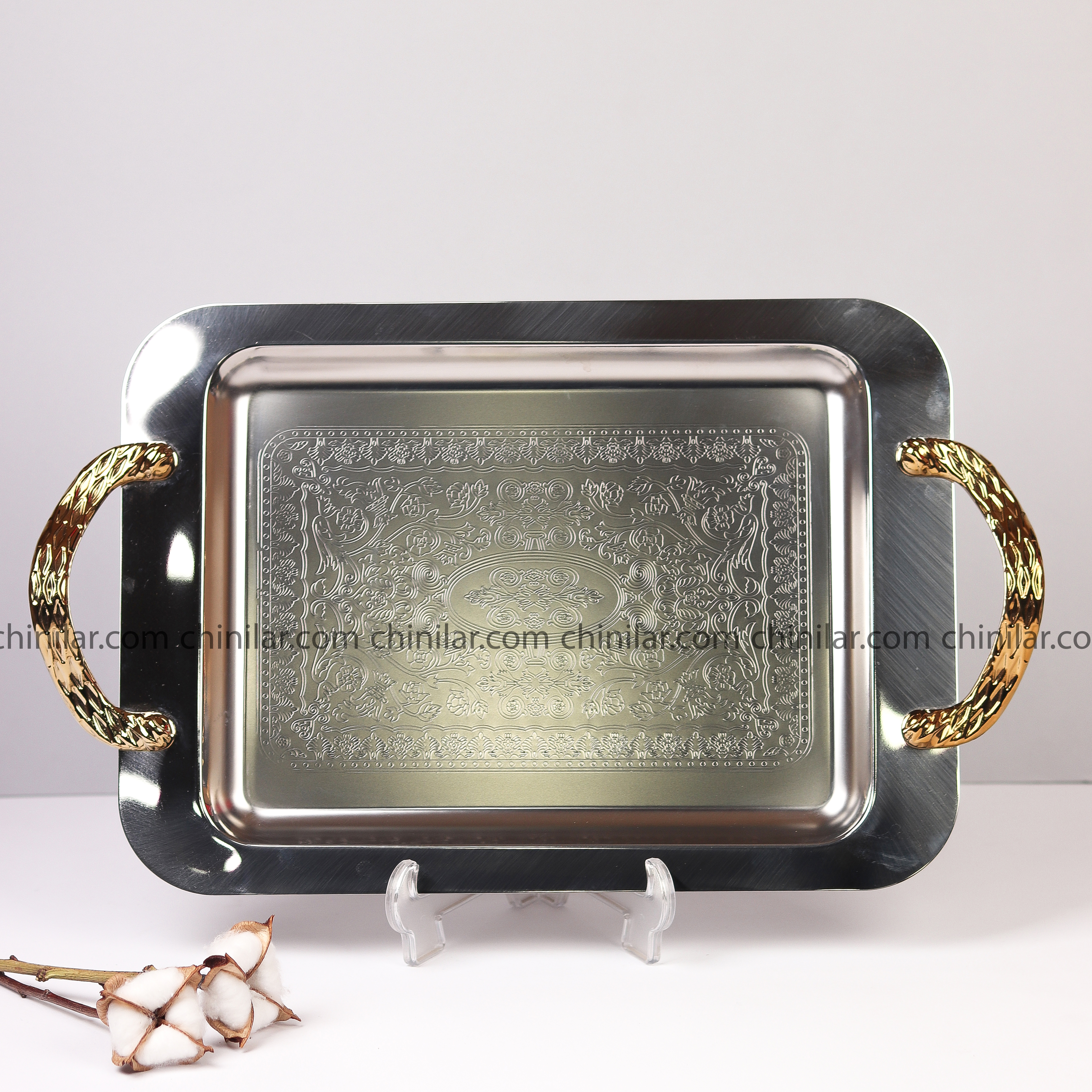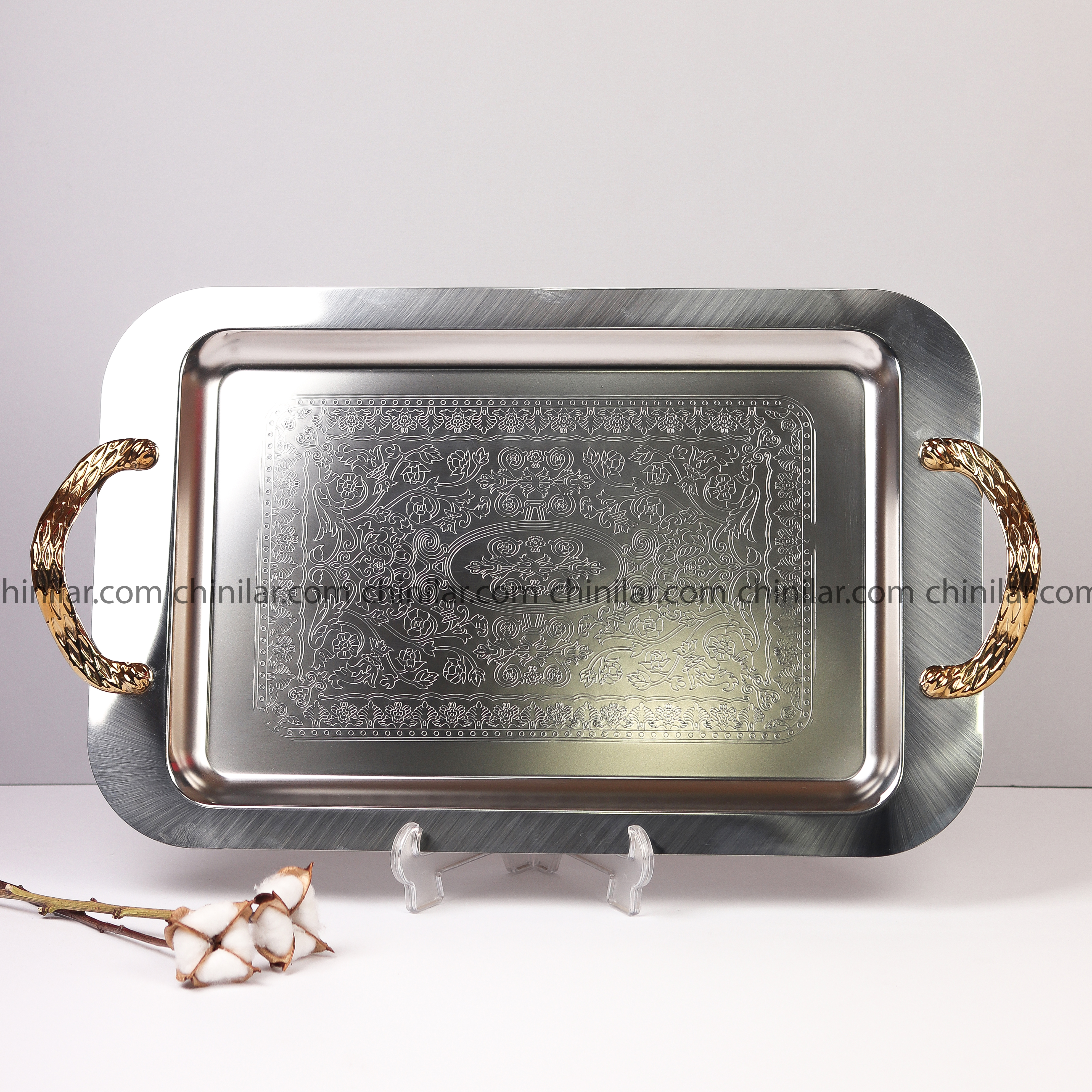 سینی استیل مستطیل دوتایی فری کوک طرح دار کد 188 دسته طلایی