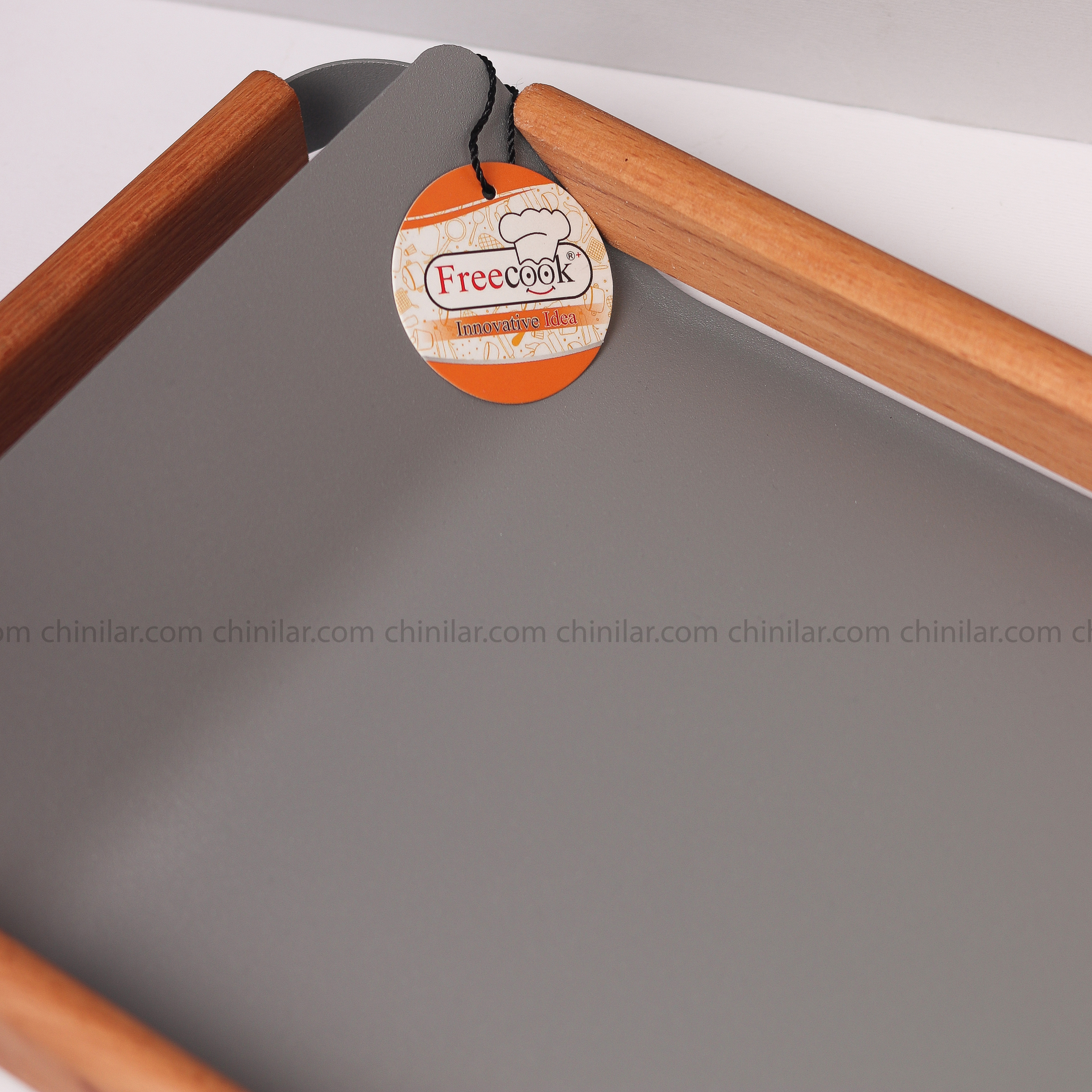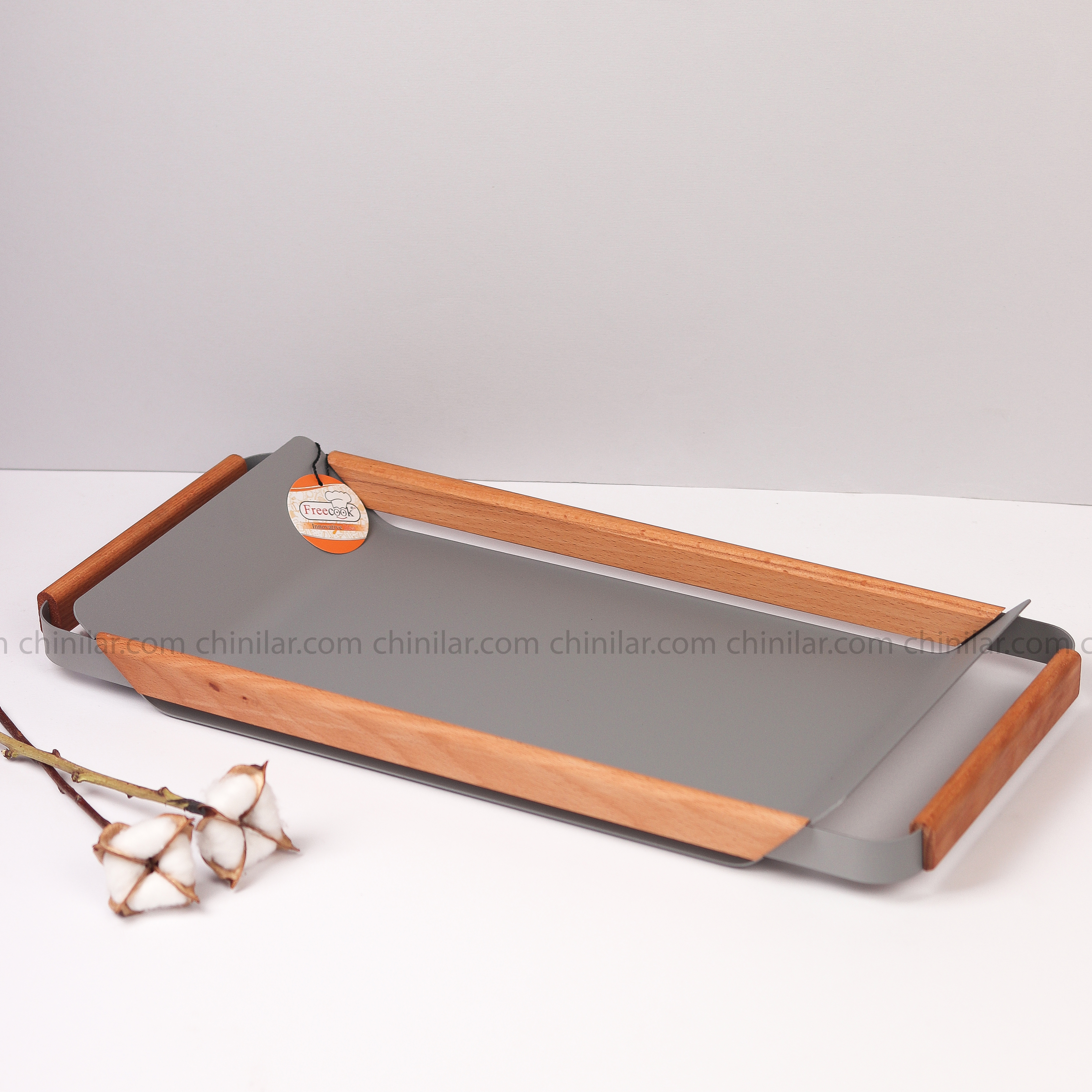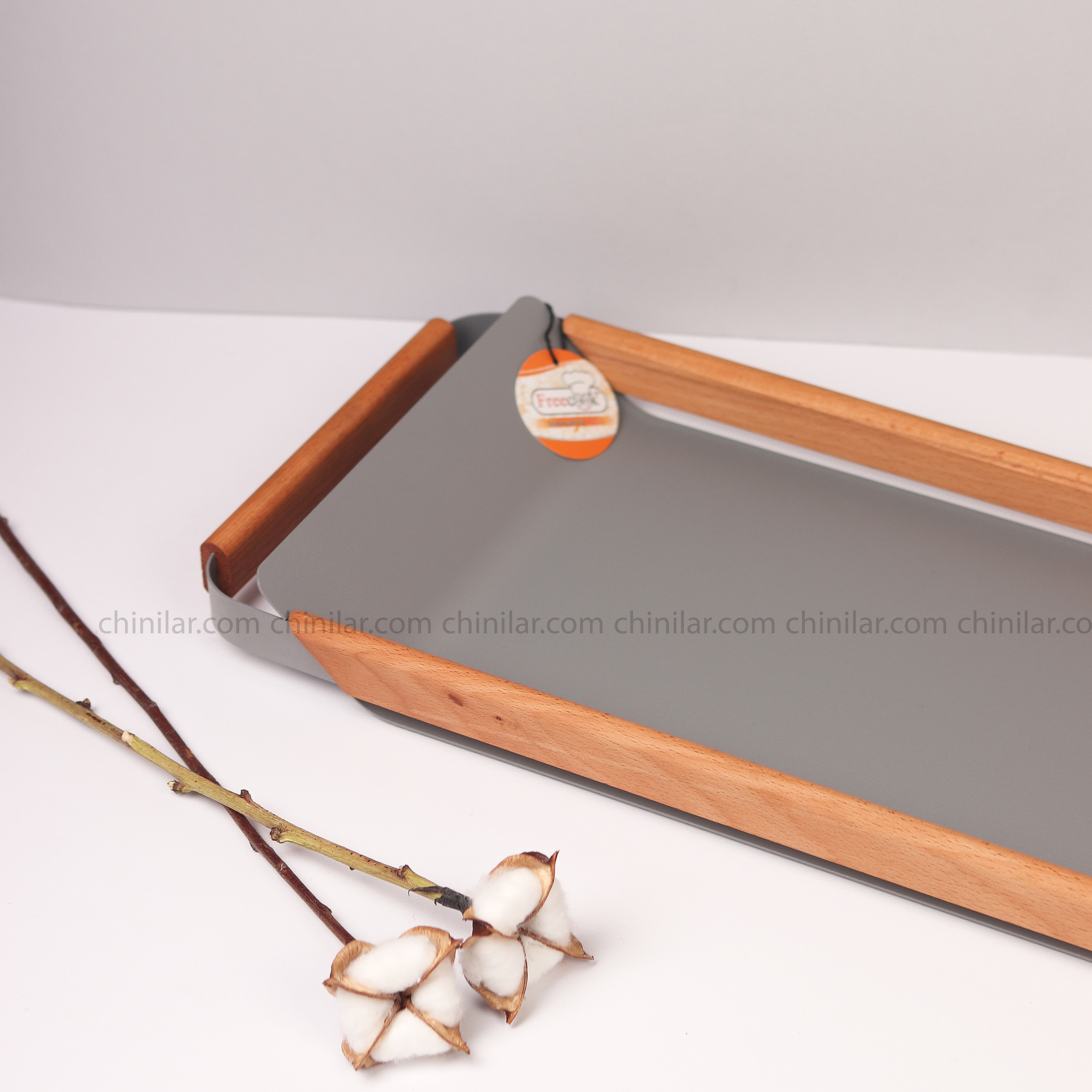 سینی ونیس مستطیل فری کوک سایز بزرگ رنگ طوسی دسته چوبی
