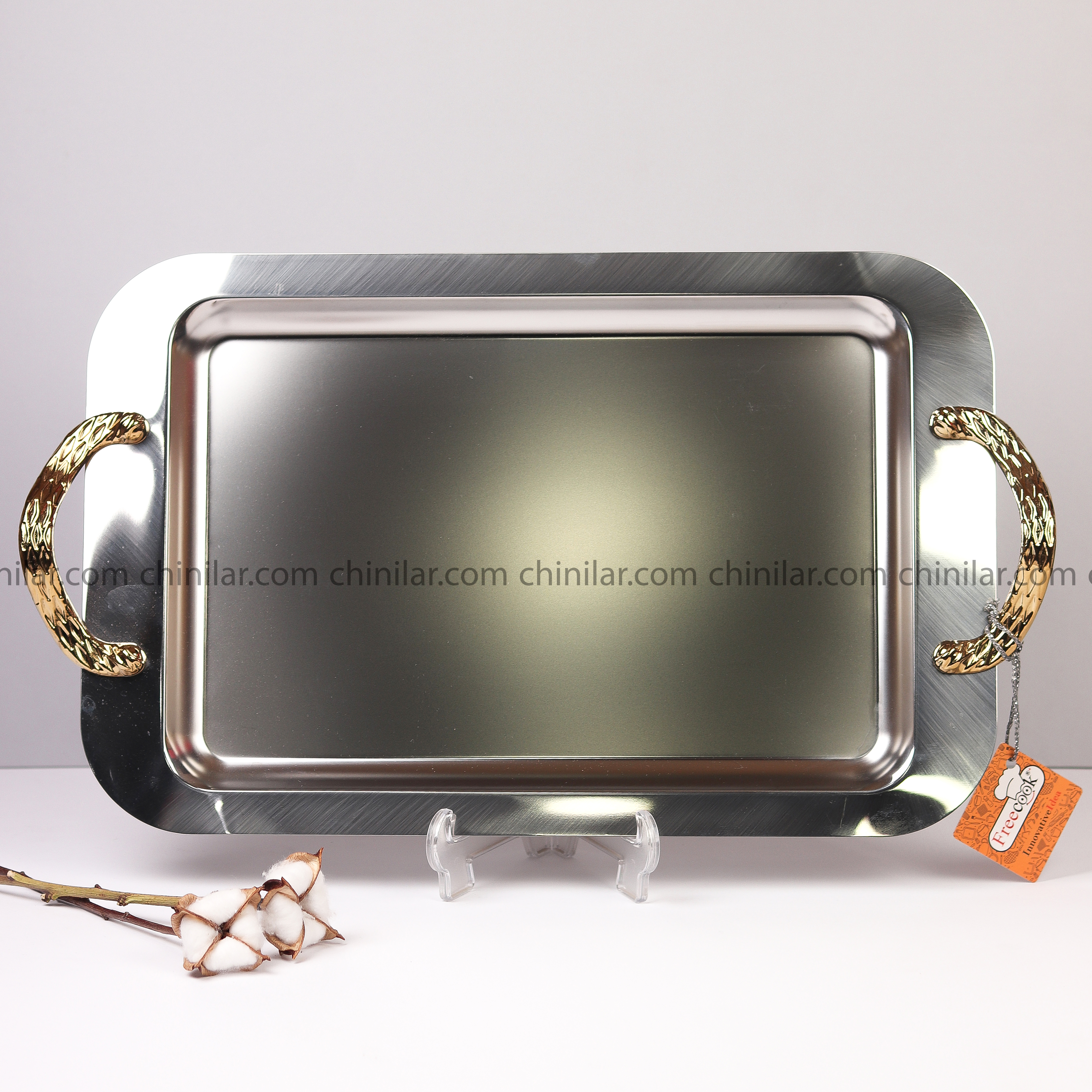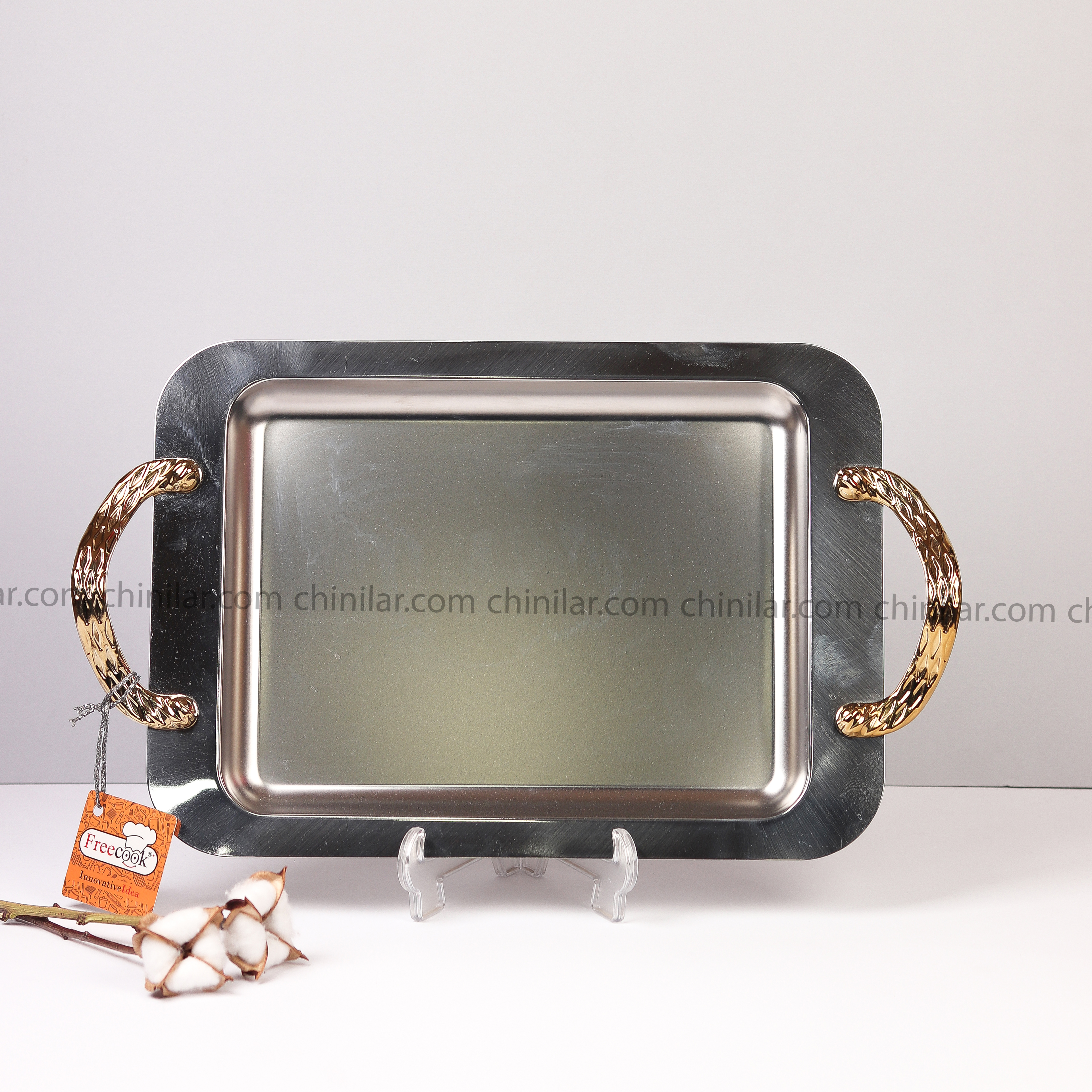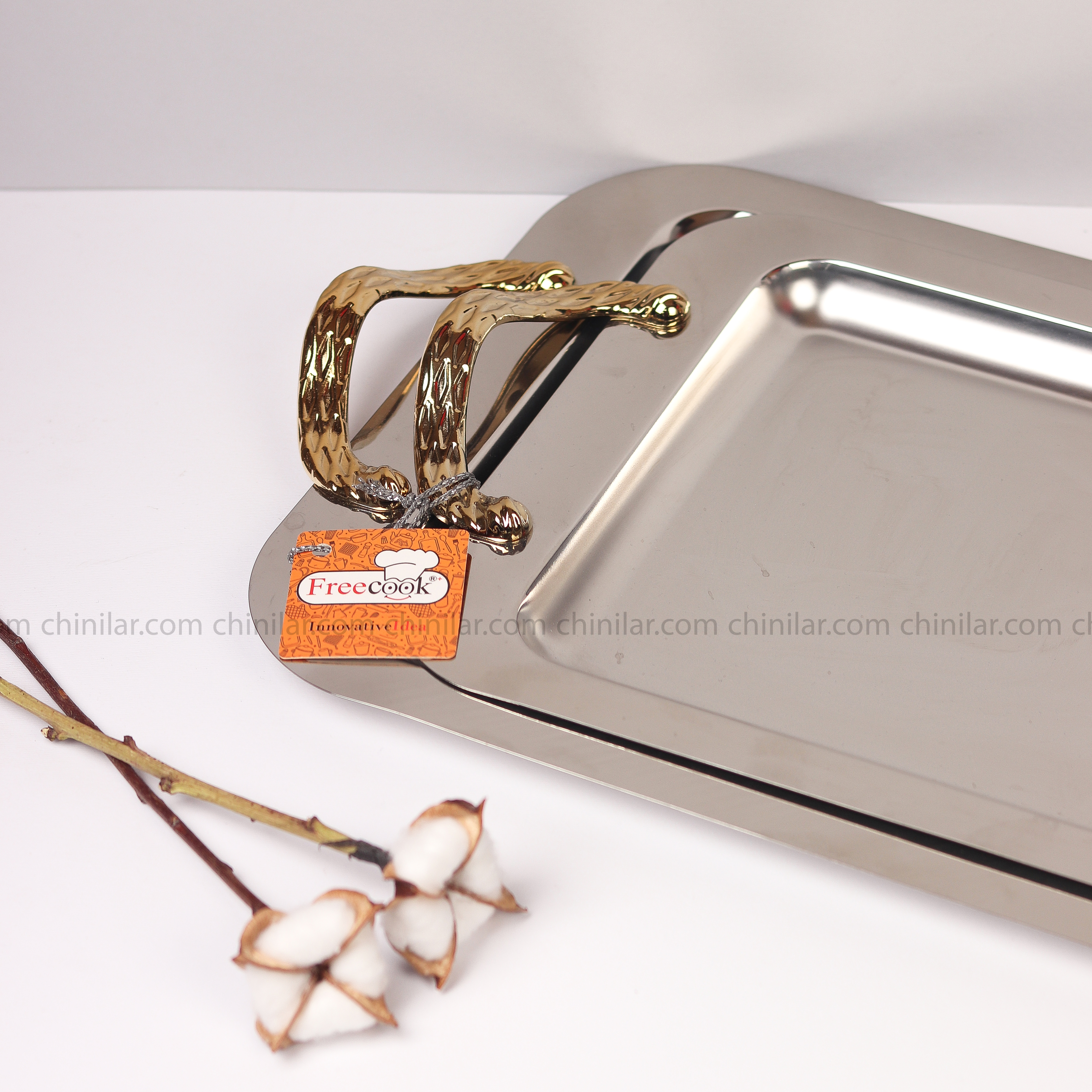 سینی استیل مستطیل دوتایی فری کوک کد 189 دسته طلایی