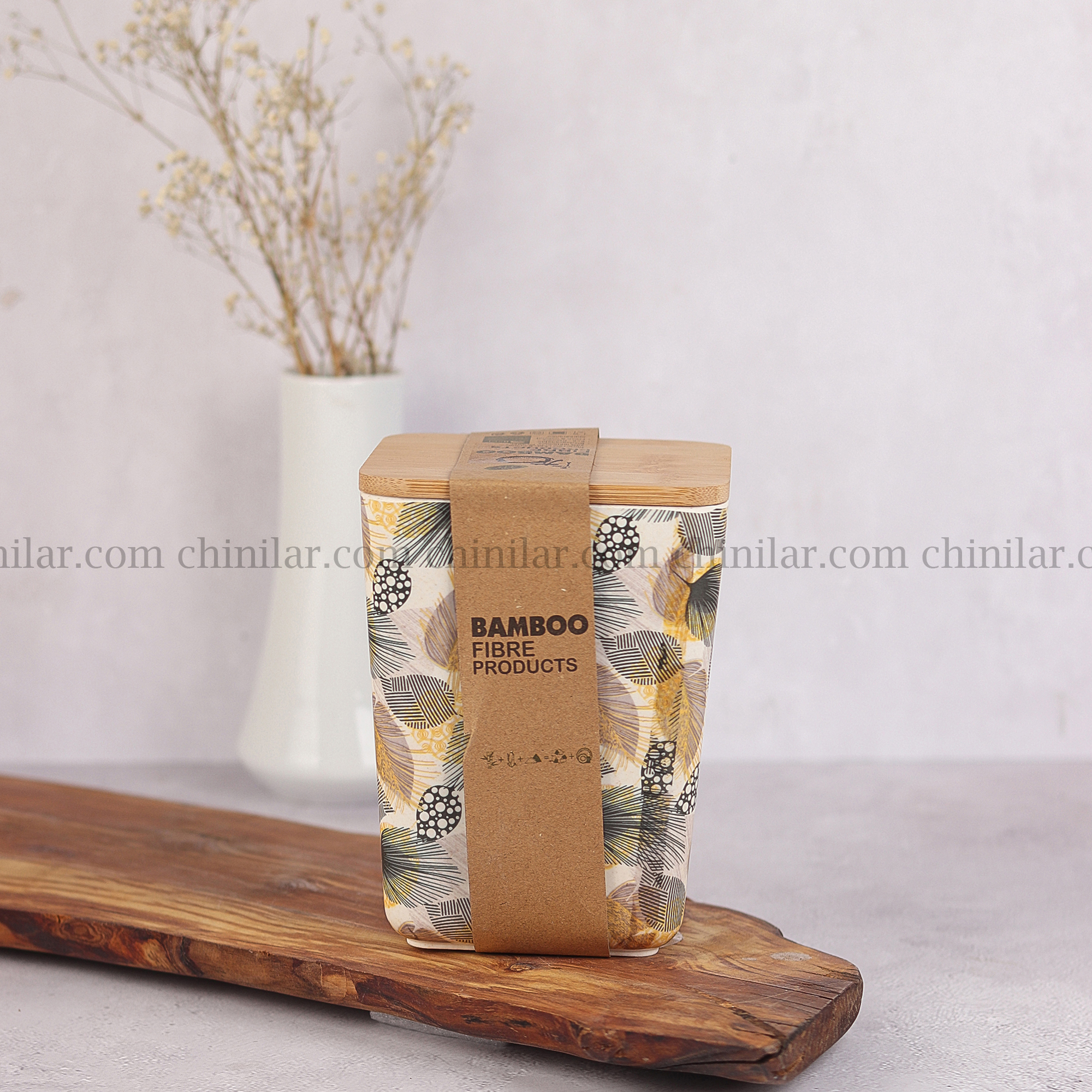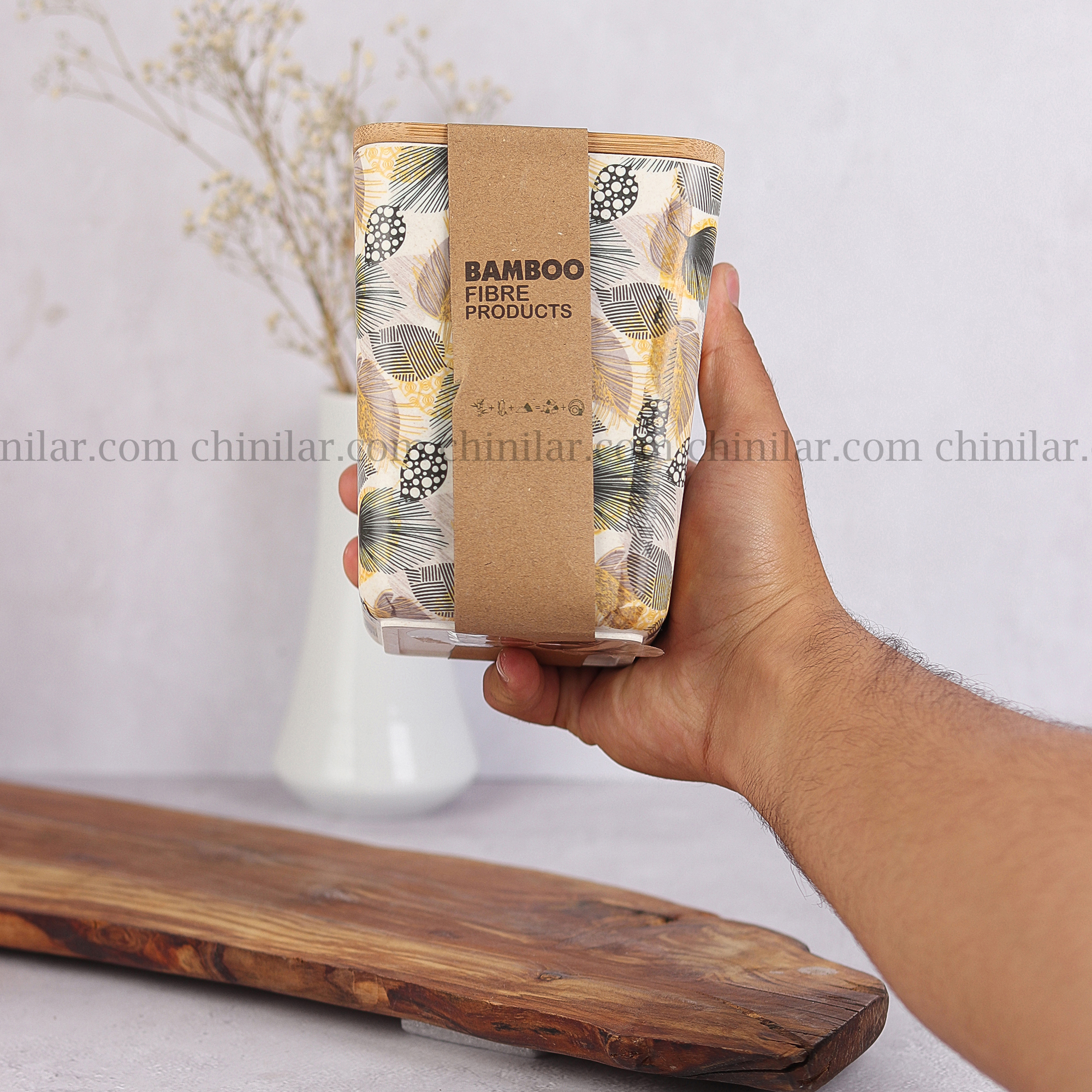 ظرف نگهدارنده بامبو مربع متوسط با درب چوبی | سبک، طبیعی و زیبا 🌿