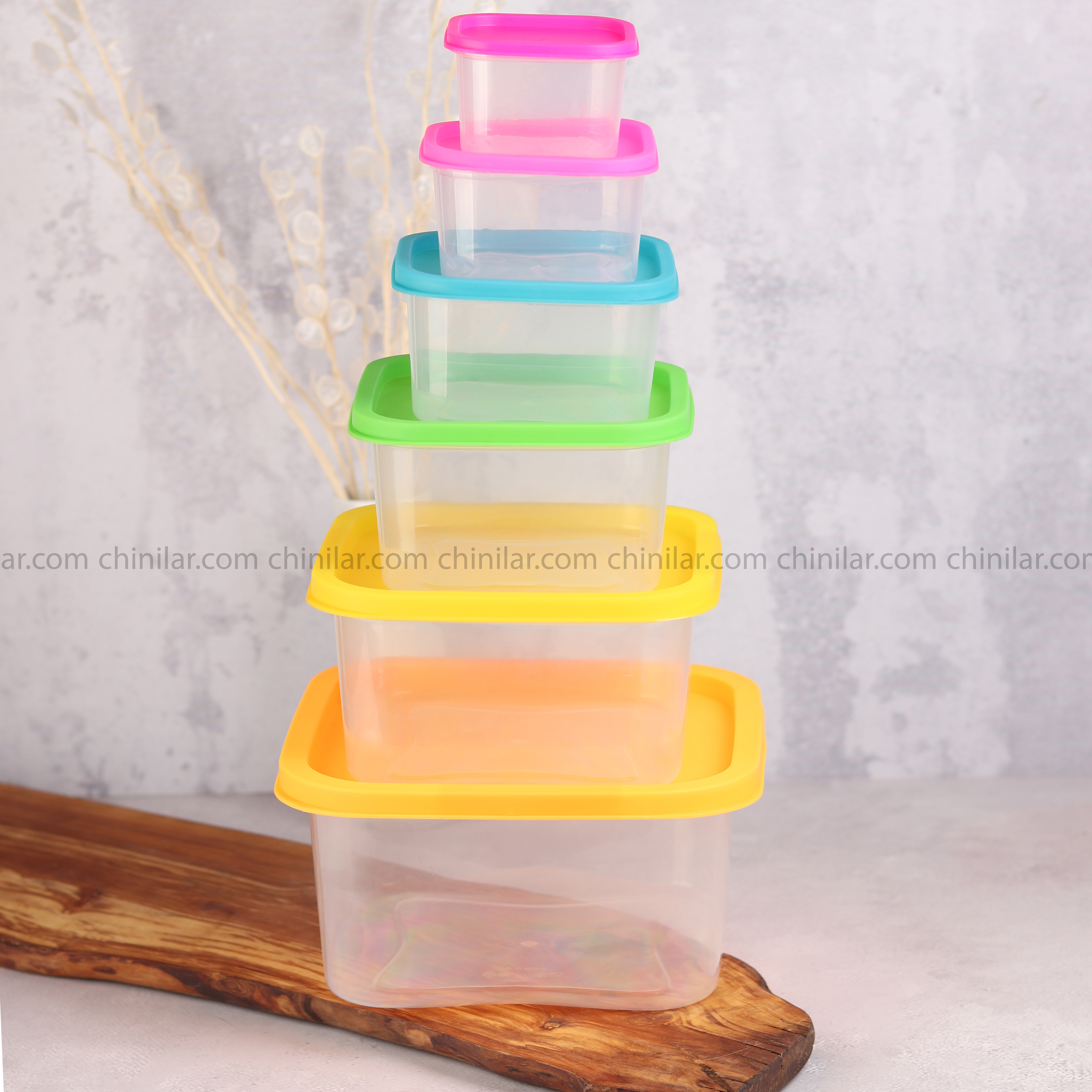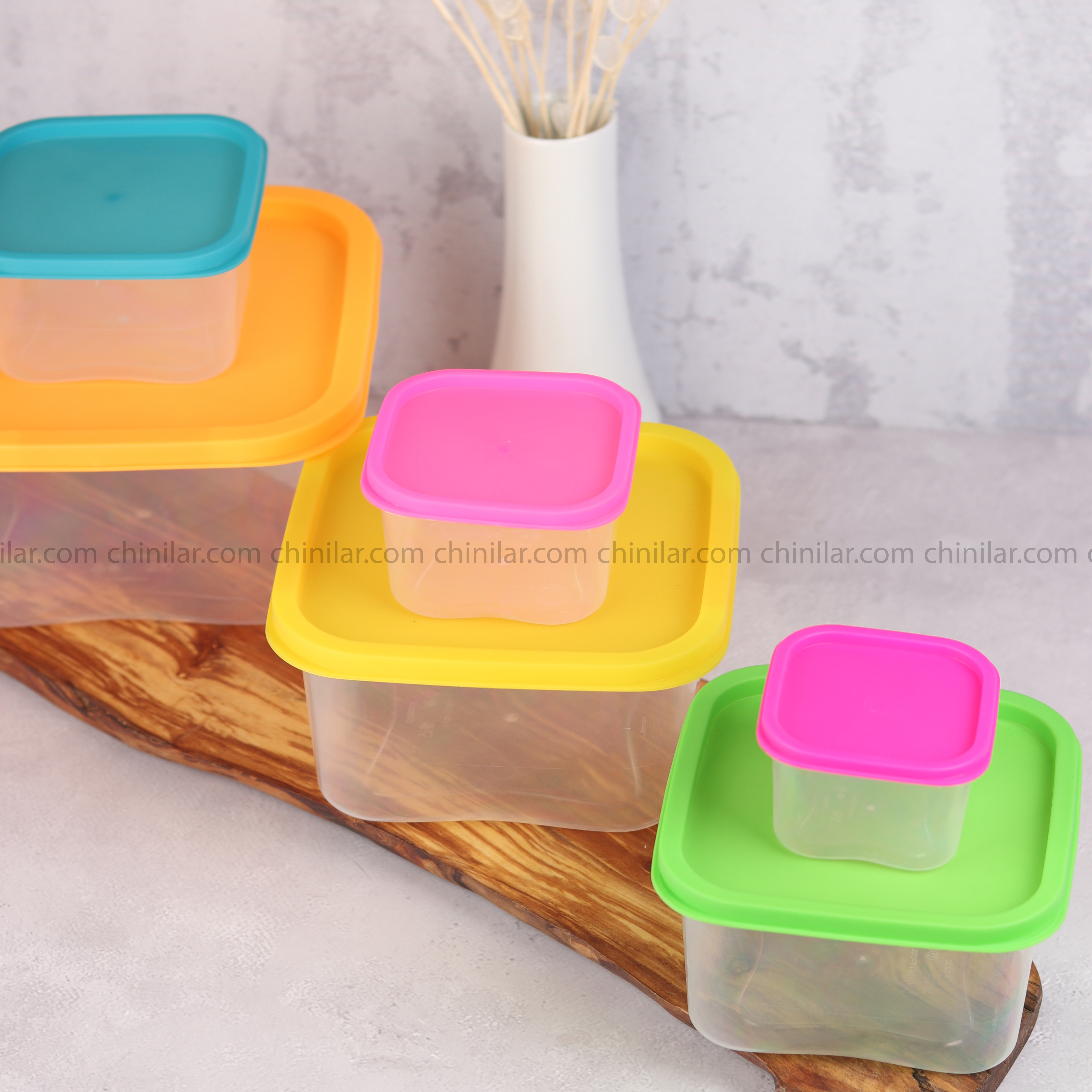 ست ۶ عددی ظرف نگهدارنده SCHAFER مدل NESTED با رنگهای شاد آبی + صورتی + سبز + نارنجی، یکی از کاربردیترین ستها برای مرتبسازی یخچال، فریزر و کابینت است. طراحی مربعی و سبک باعث میشود ظروف بهخوبی روی هم قرار بگیرند و فضای کمی اشغال کنند. بدنه پلاستیکی باکیفیت و دربهای سیلیکونی محکم، از بوگرفتن، نشت و خشک شدن غذا جلوگیری میکند. تنوع سایزها از کوچک تا بزرگ باعث شده برای هر نوع استفادهای مناسب باشد—از غذای کودک و میوه خردشده تا غذای پخته، سس، سالاد و خوراکیهای خشک.