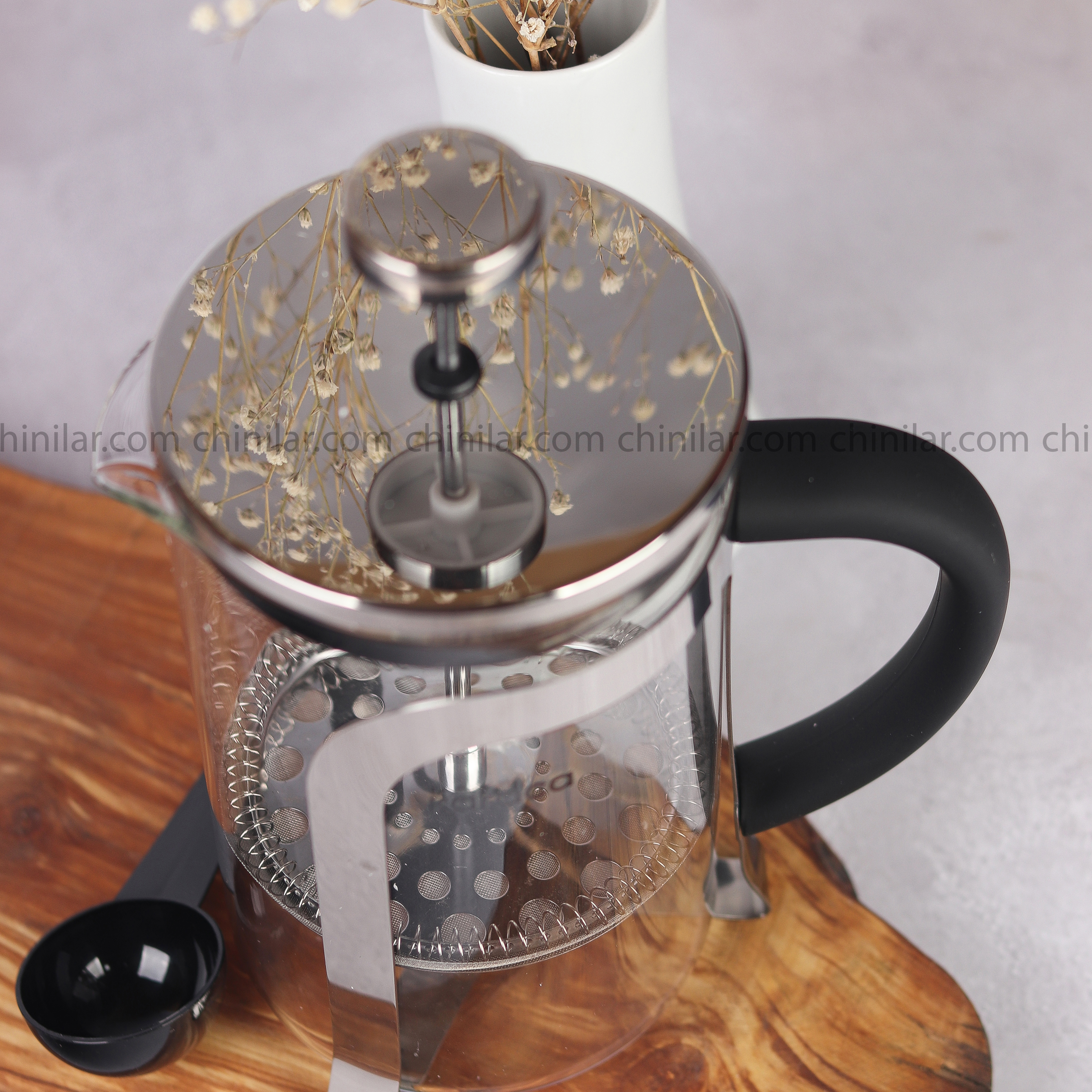 ترکیب رنگ دسته مشکی و بدنه نقرهای، جلوهای مدرن و شیک به آشپزخانه شما میبخشد و آن را از فرنچ پرسهای ساده متمایز میکند.