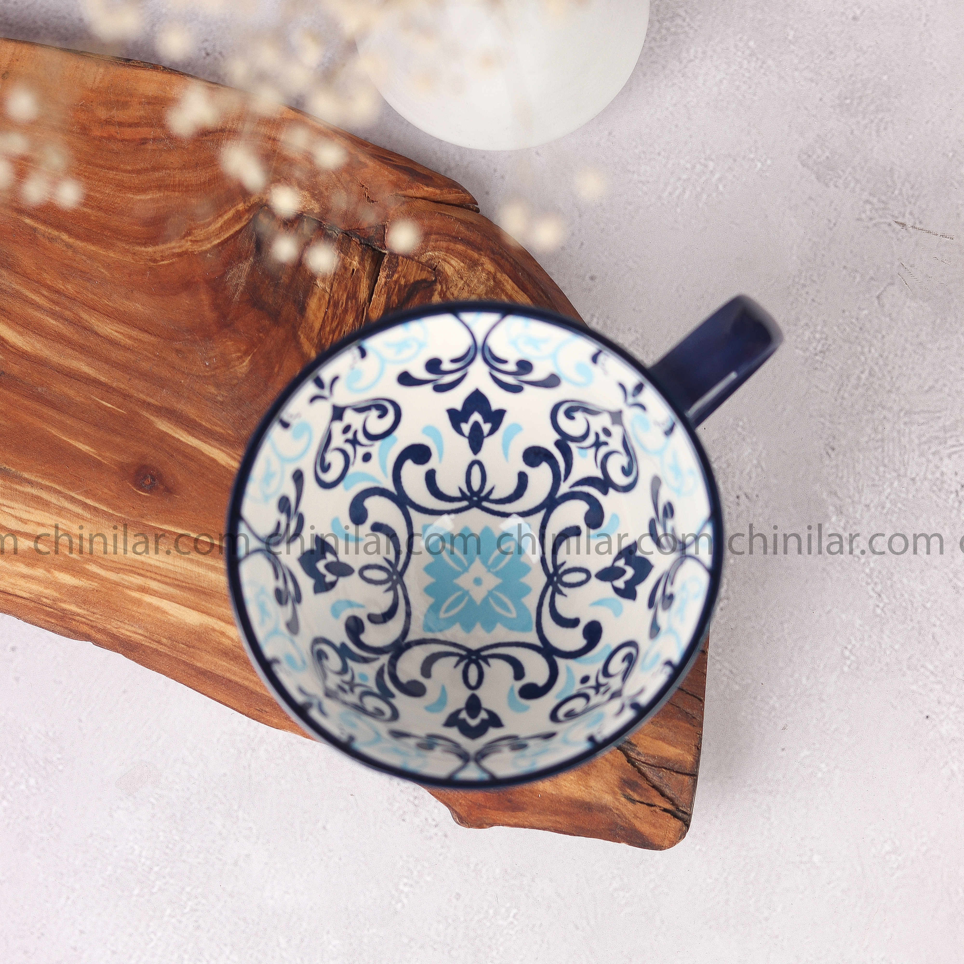 ترکیب رنگ آبی بدنه با نقشهای سرمهای و آبی روشن، حس آرامش و نظم را به میز نوشیدنی اضافه میکند و این لیوان را از مدلهای ساده و تکراری متمایز میسازد. به همین دلیل، علاوه بر استفاده شخصی، میتواند انتخابی مناسب برای هدیه یا تکمیل یک ست قهوهخوری شیک باشد.