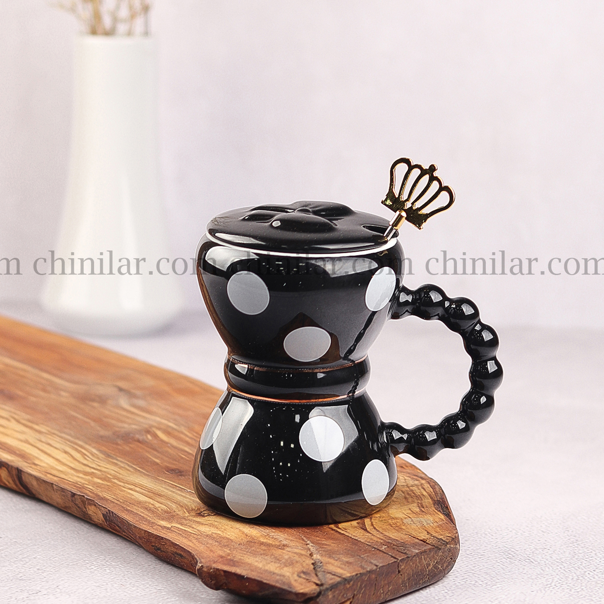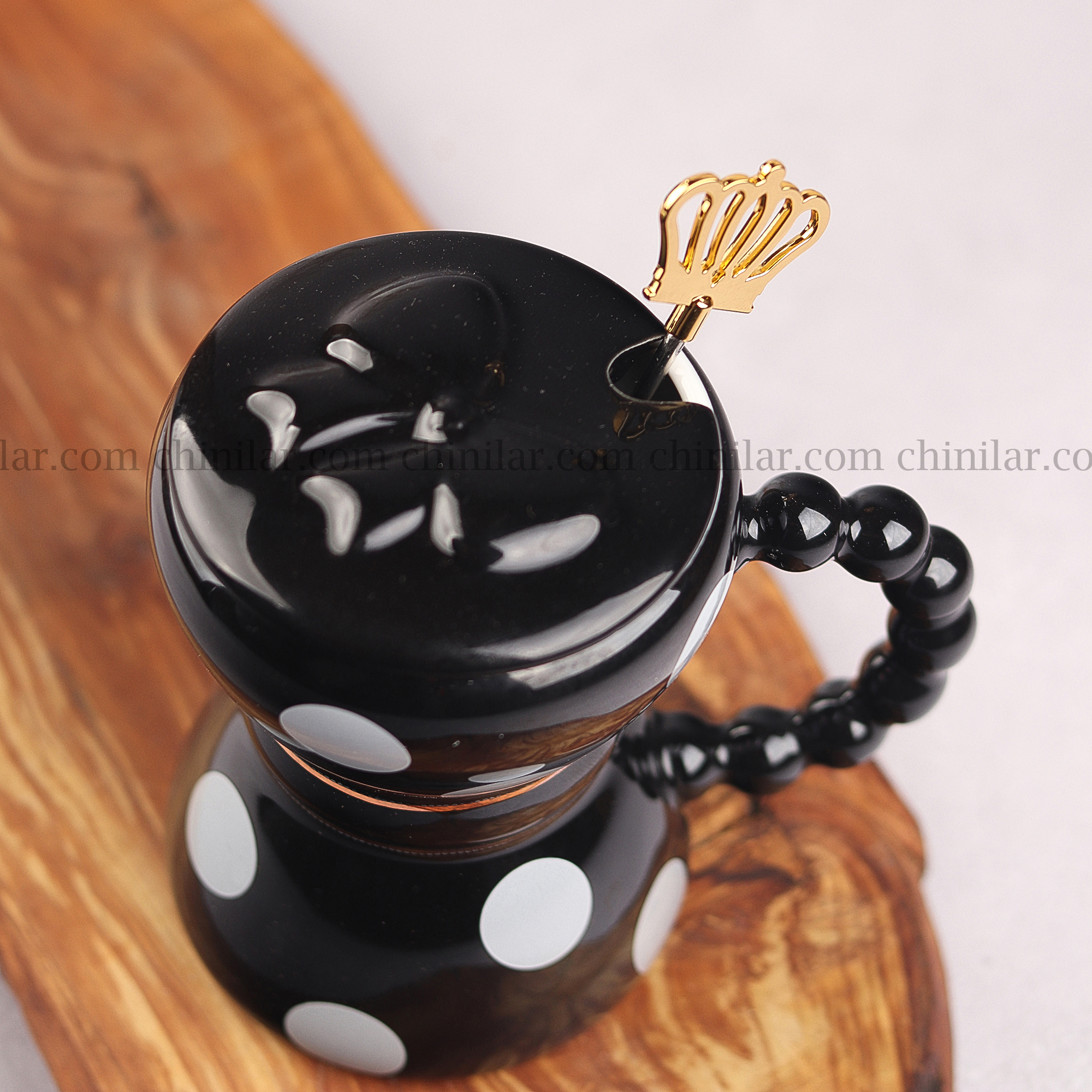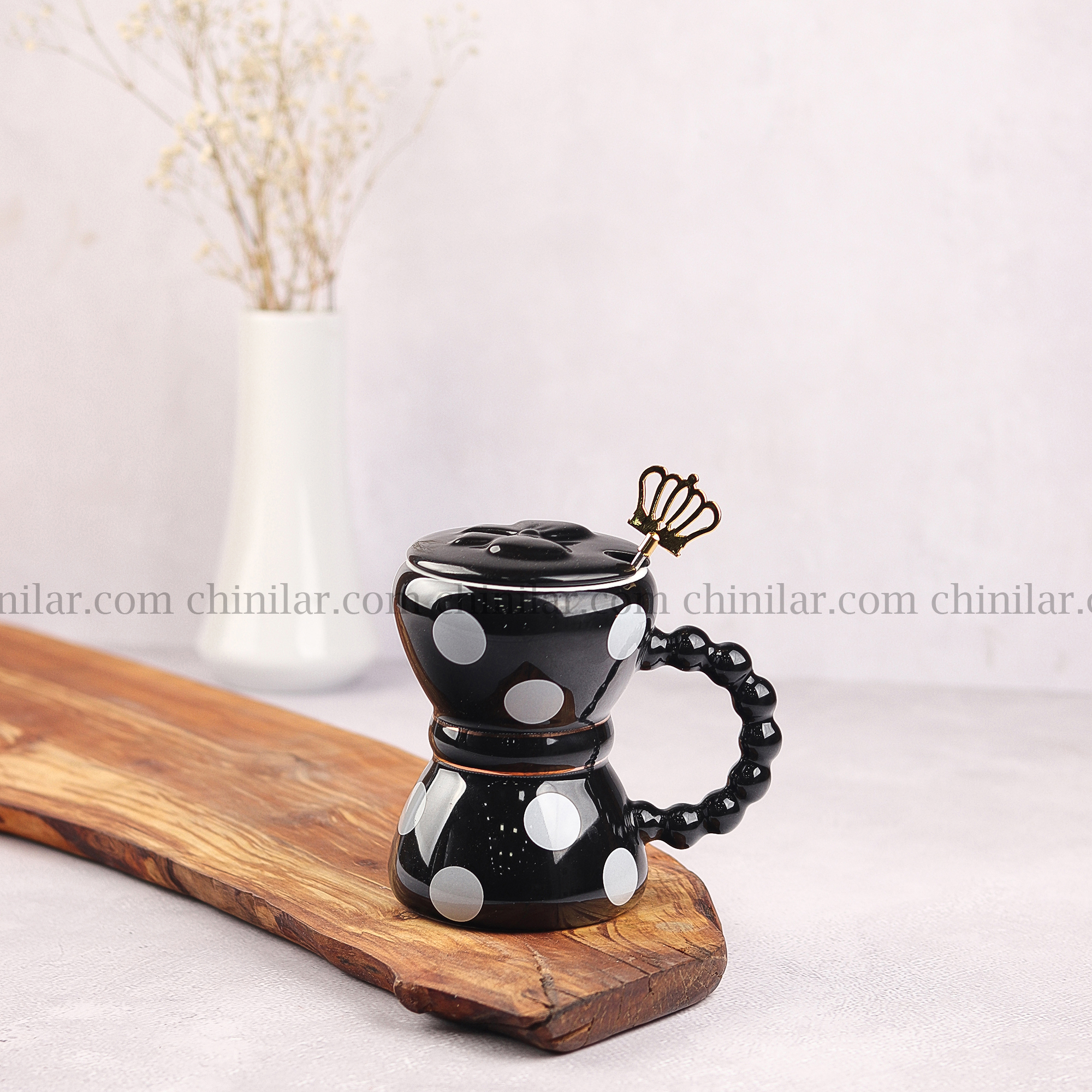 لیوان دسته دار سرامیکی طرح بلک کویین – کد 819 | شکوه سادگی در قالبی مدرن