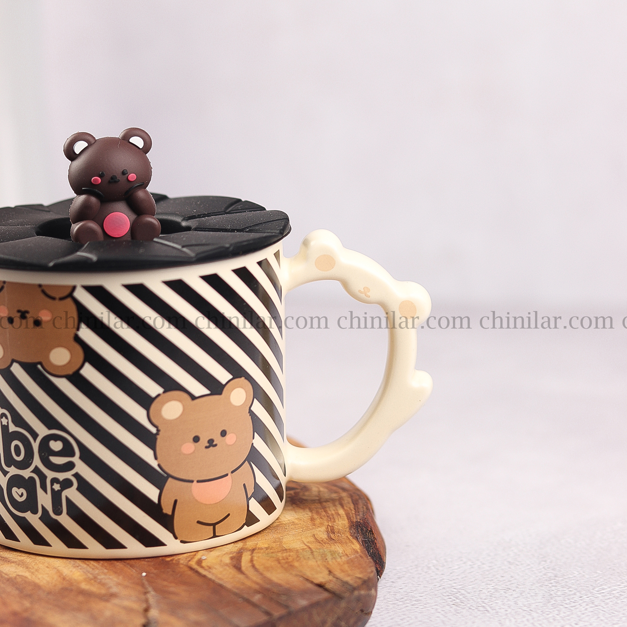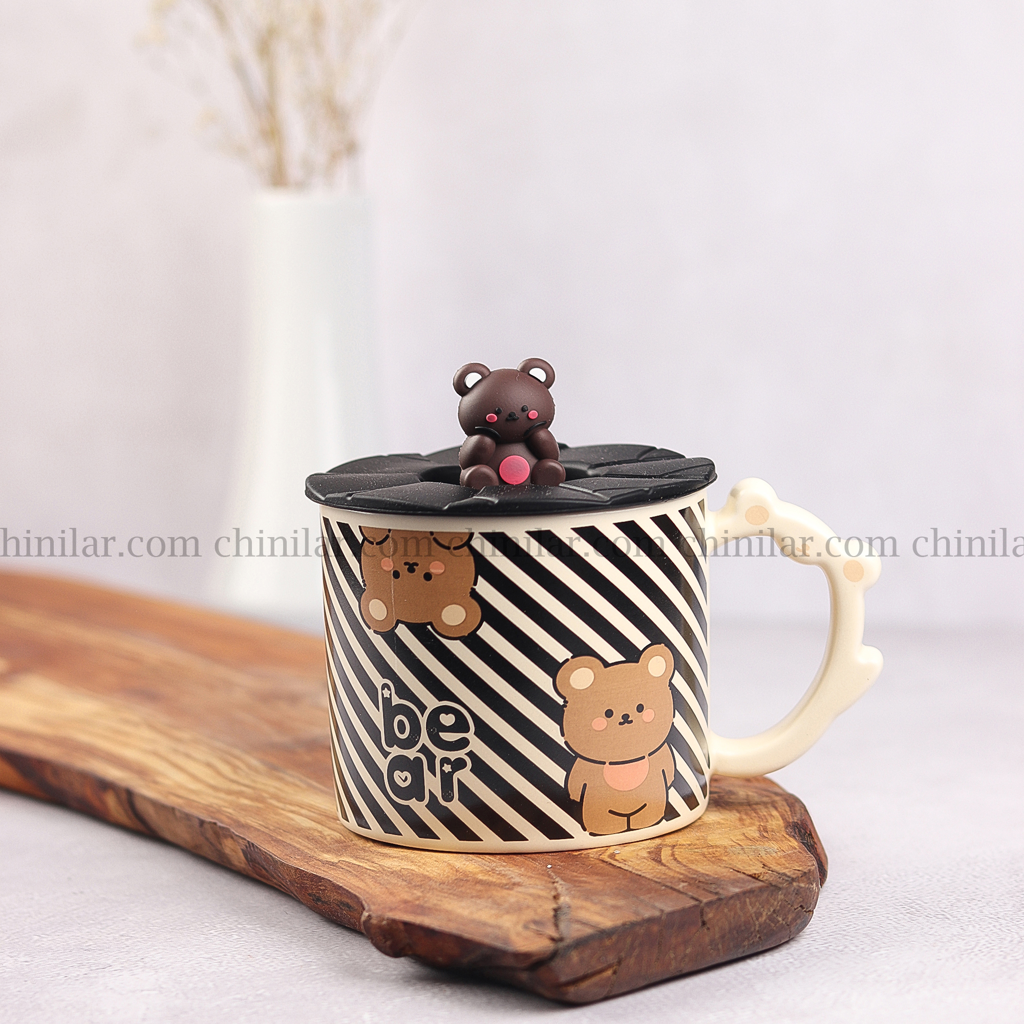 ماگ تدی درب‌دار مشکی-سفید | ترکیب بی‌نظیر طراحی و کارایی