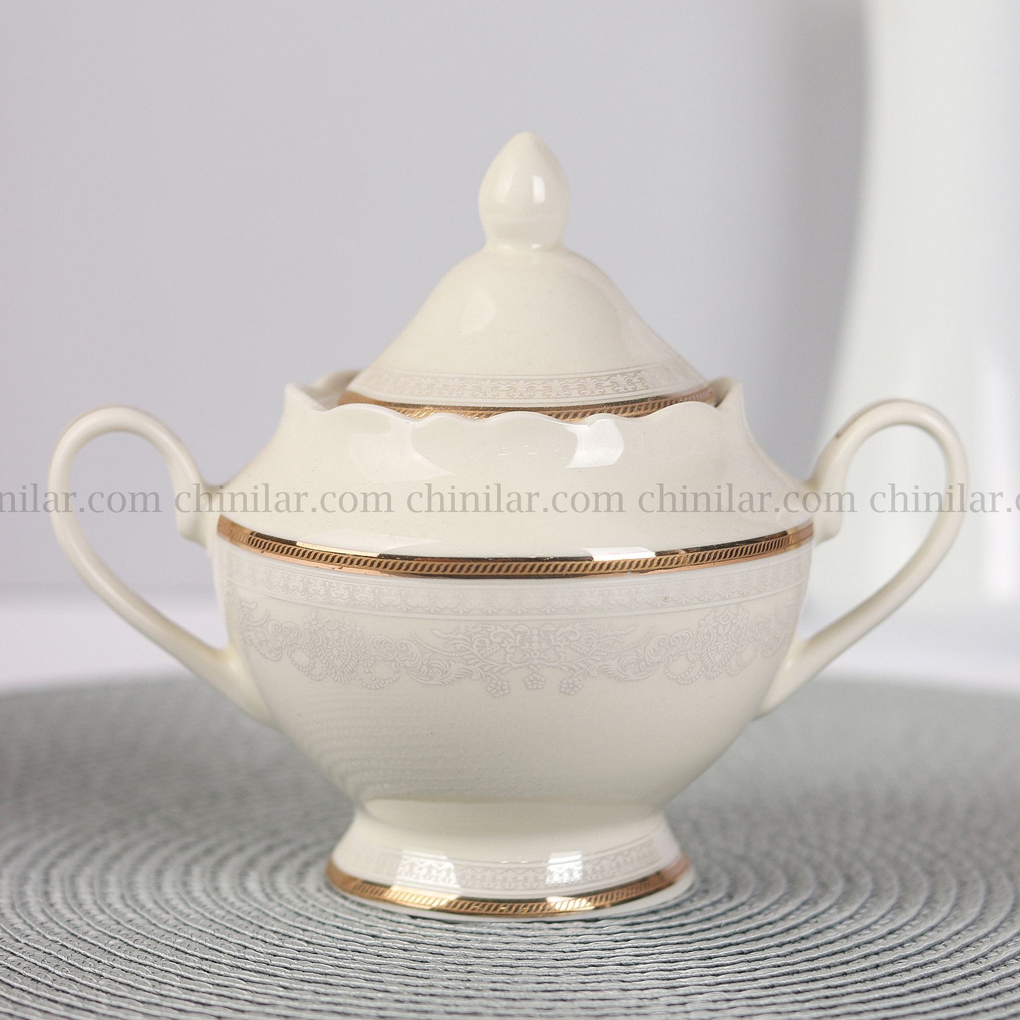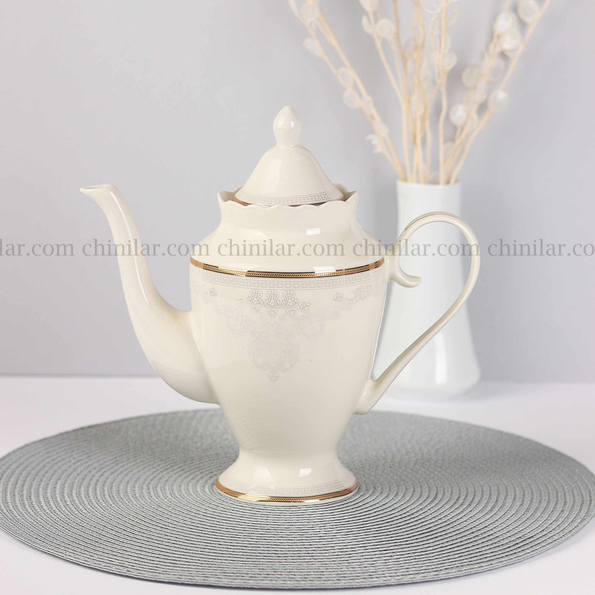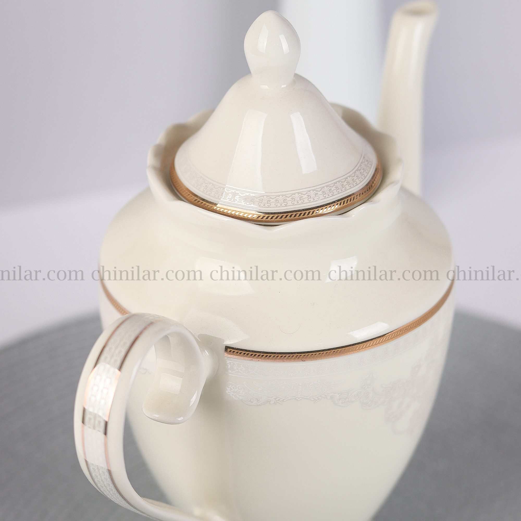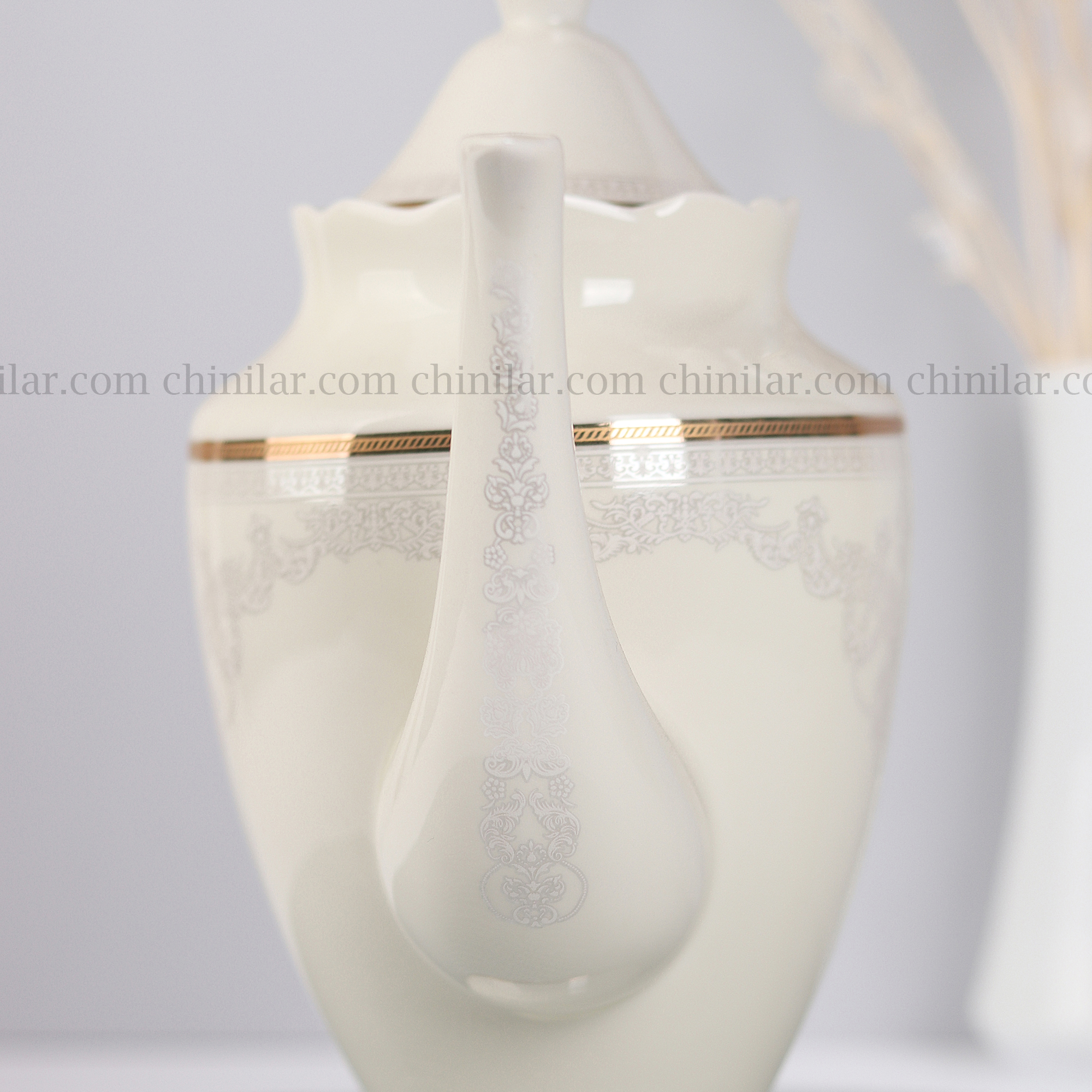 این سرویس با پیکره استخوانی رنگ و لعاب براق خود، جلوهای کلاسیک و درعینحال مدرن دارد. نقوش نقرهای هماهنگ با خطوط طلایی دور ظروف، ترکیبی از شکوه سلطنتی و ظرافت هنرمندانه را ارائه میدهد که در هر پذیرایی میدرخشد.