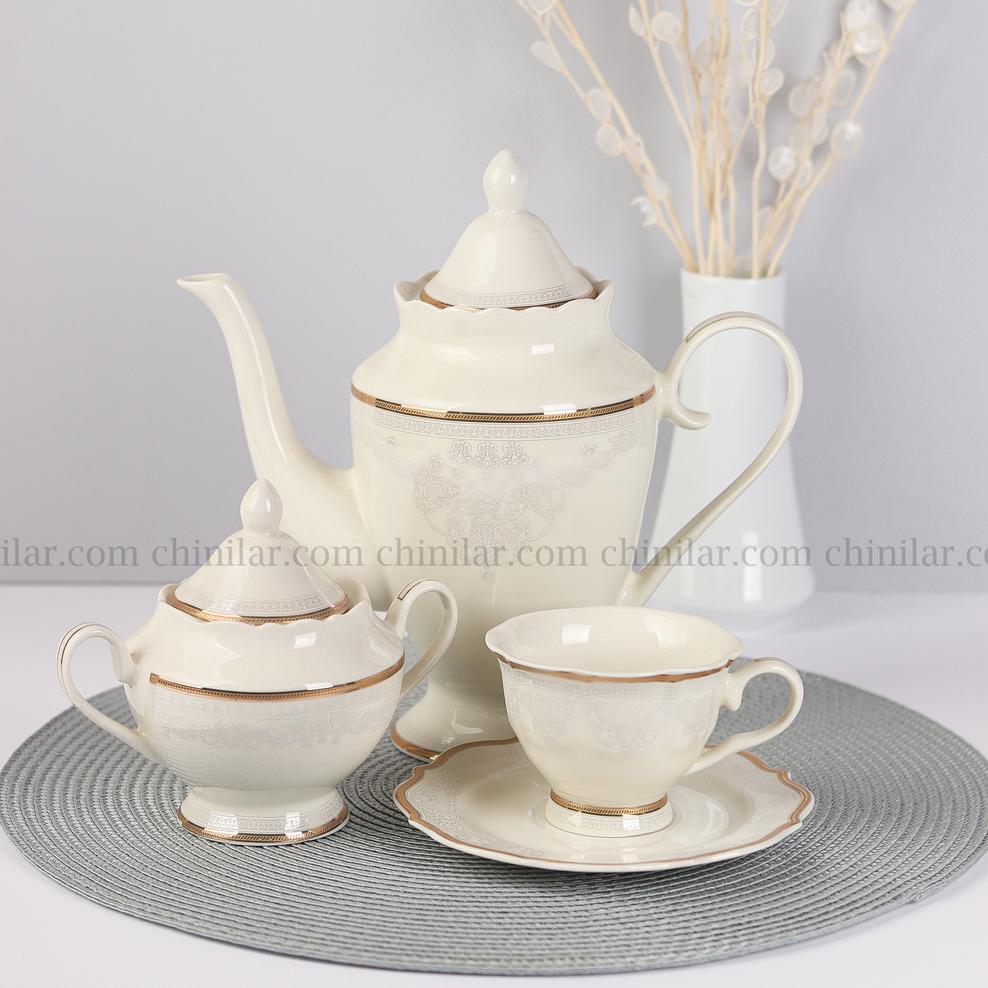 قوری خوشتراش و قندان ظریف این سرویس، در کنار فنجانها و نعلبکیهای متقارن آن، یک مجموعه کامل برای چای عصرانه، مهمانیهای رسمی یا پذیرایی روزمرهی شیک شماست.