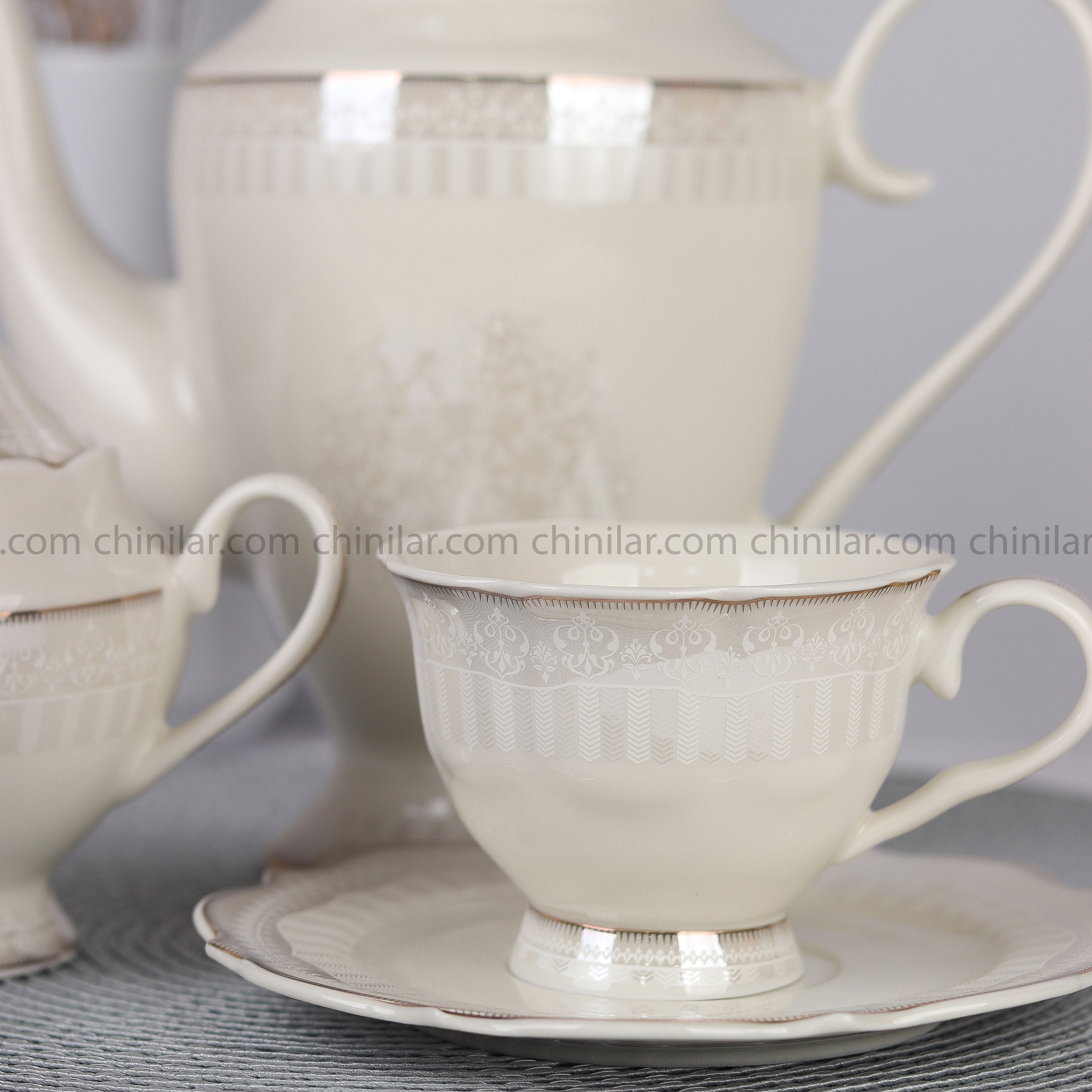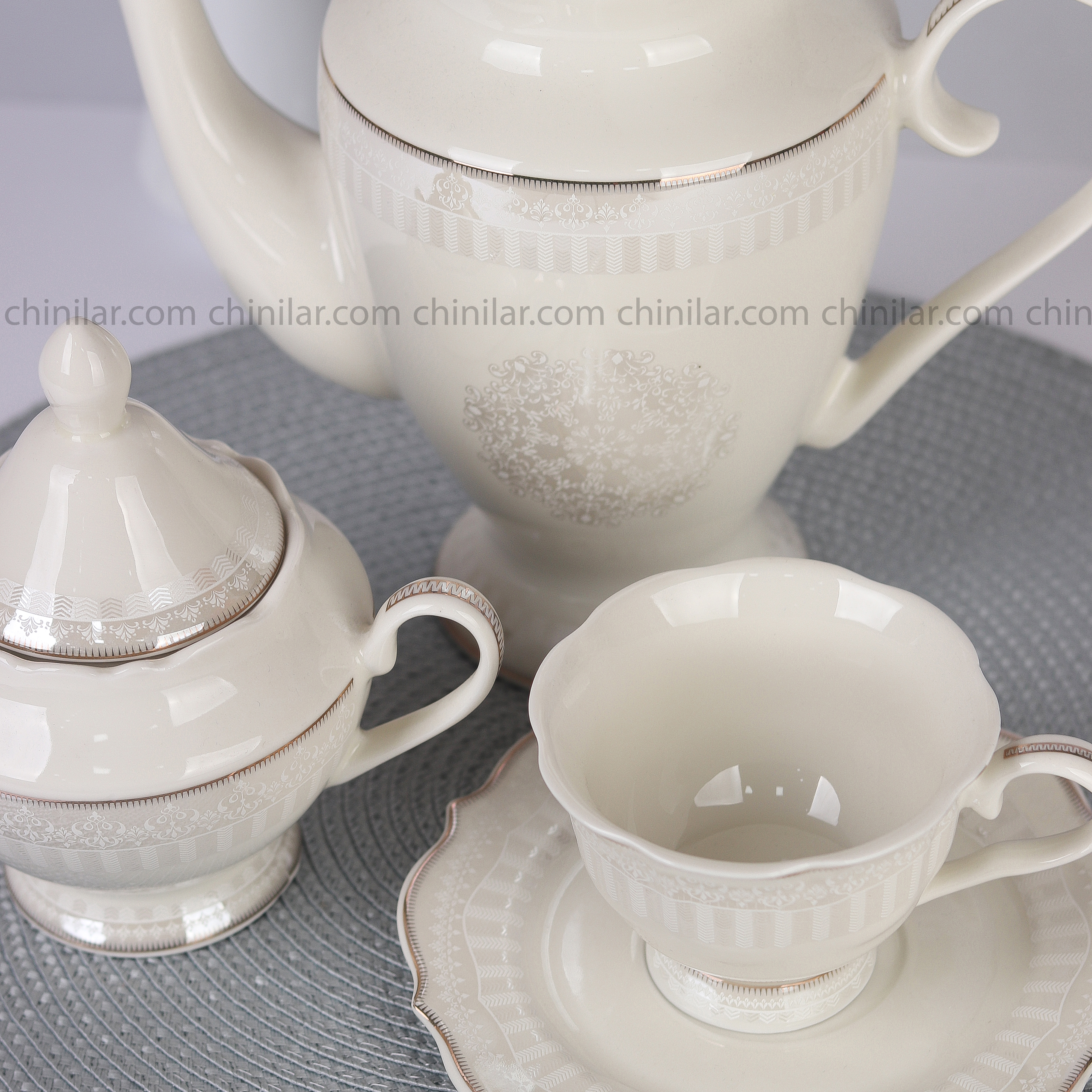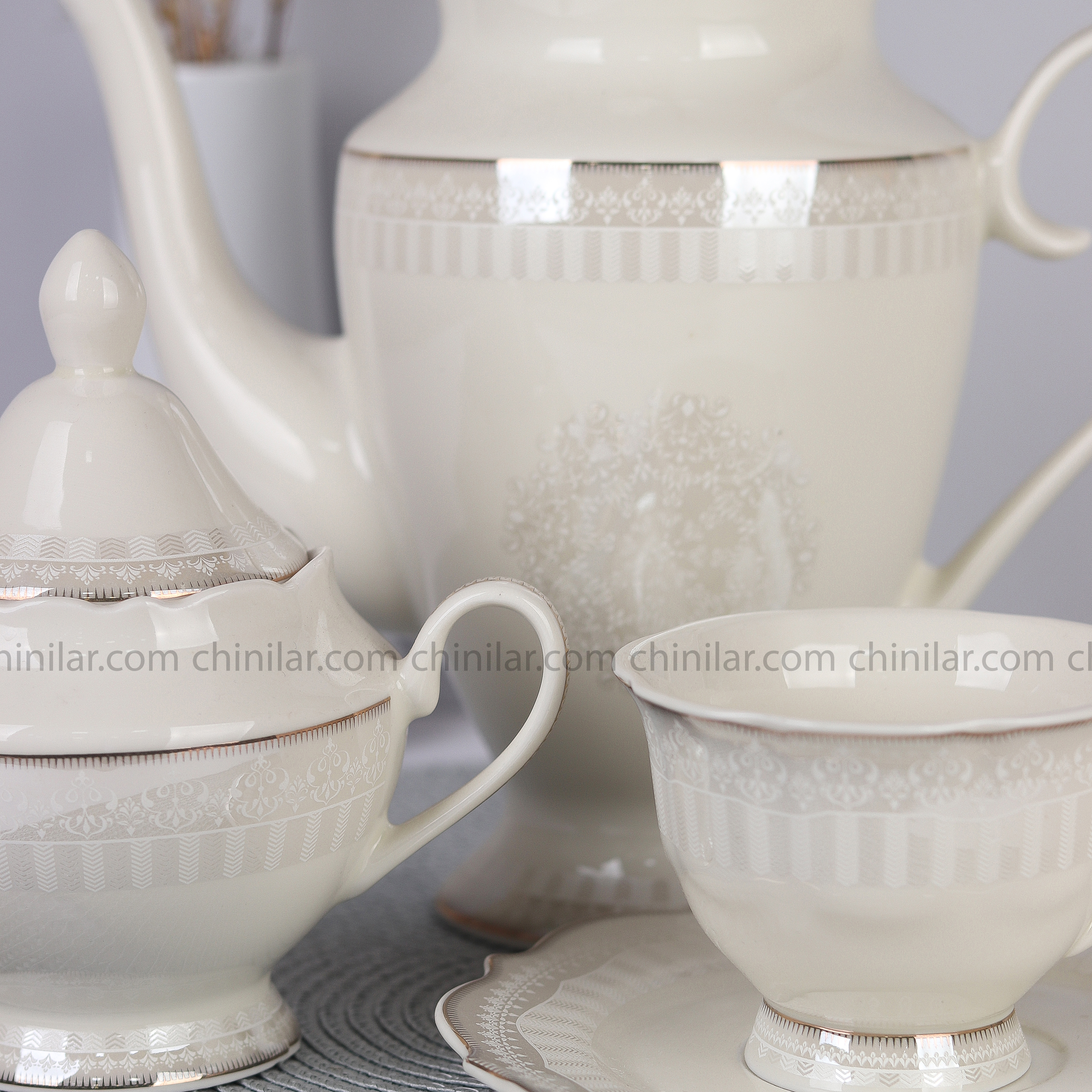 سرویس چایخوری دارسی طرح 3014 با قالب محبوب آنجلیکا، انتخابی ایدهآل برای افرادیست که به زیبایی و هماهنگی میز پذیرایی اهمیت میدهند. رنگ استخوانی پیکره در کنار نقوش نقرهای و خطوط دور نقرهای، جلوهای لوکس و شیک ایجاد کرده و سرویس را برای پذیرایی رسمی و روزمره مناسب میکند.