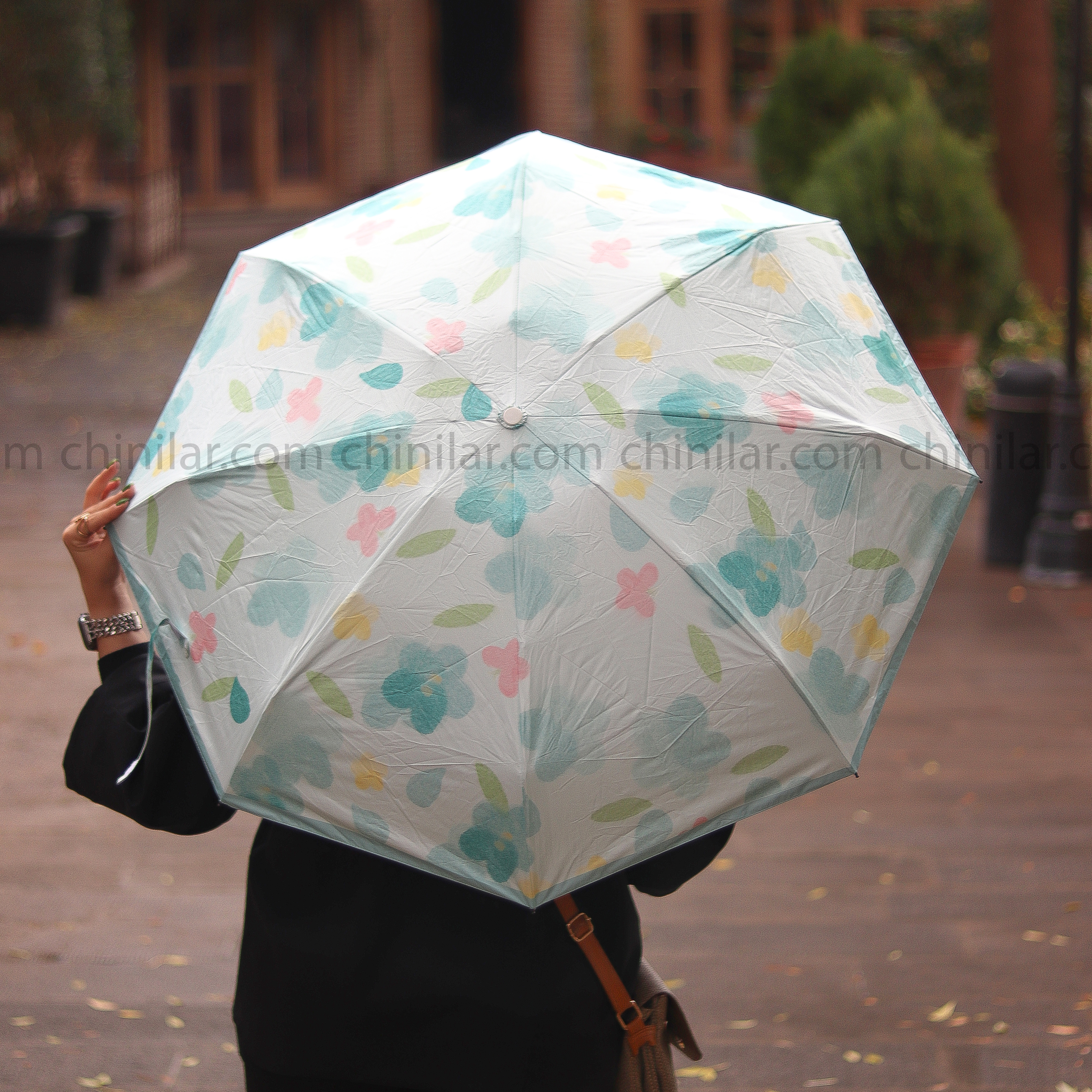 چتر نانو با پوشش ضدآب و طرح گل سبز روشن، ترکیبی از زیبایی، دوام و محافظت در برابر باران و آفتاب است.