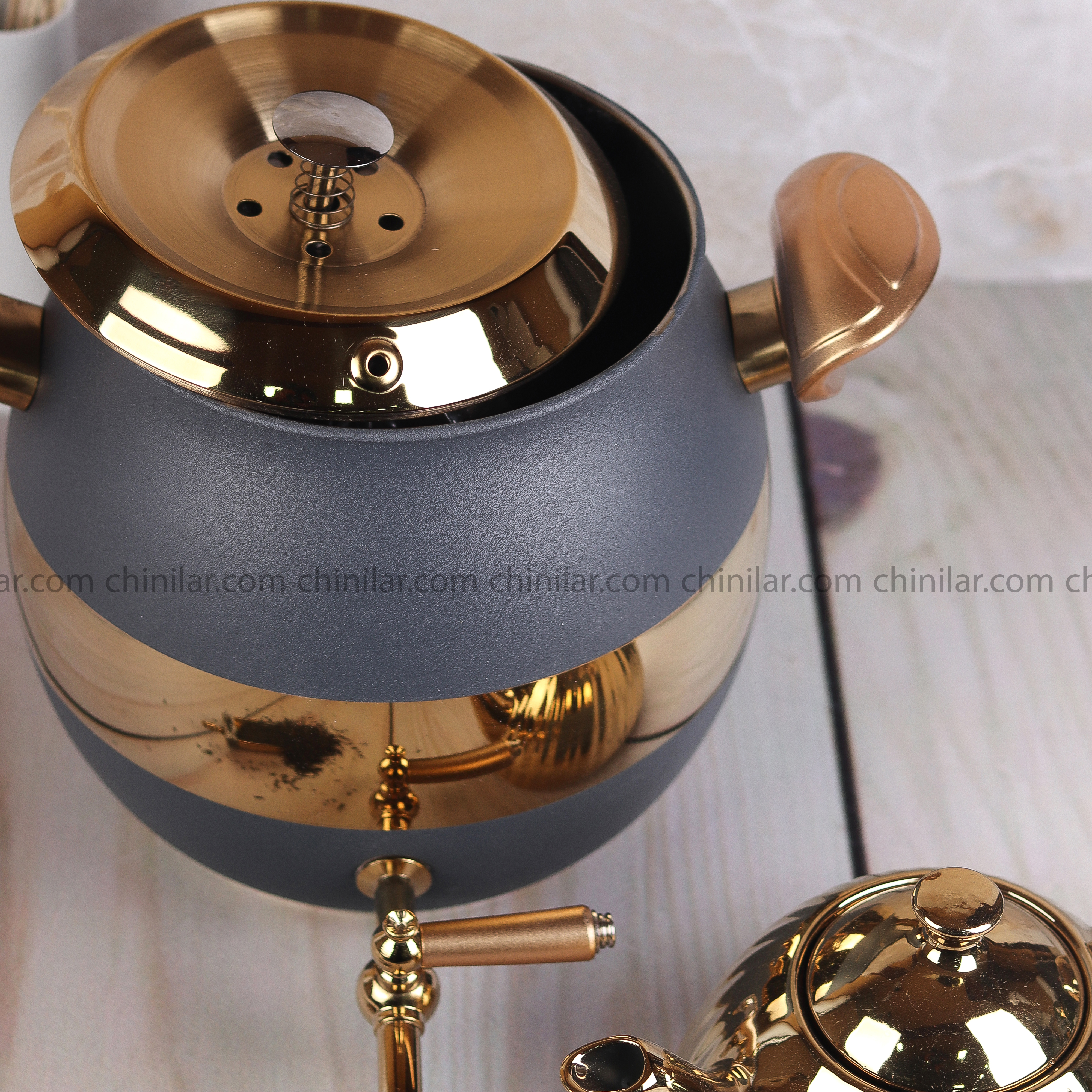 کتری و قوری استیل توپی خط طلایی تیتیل