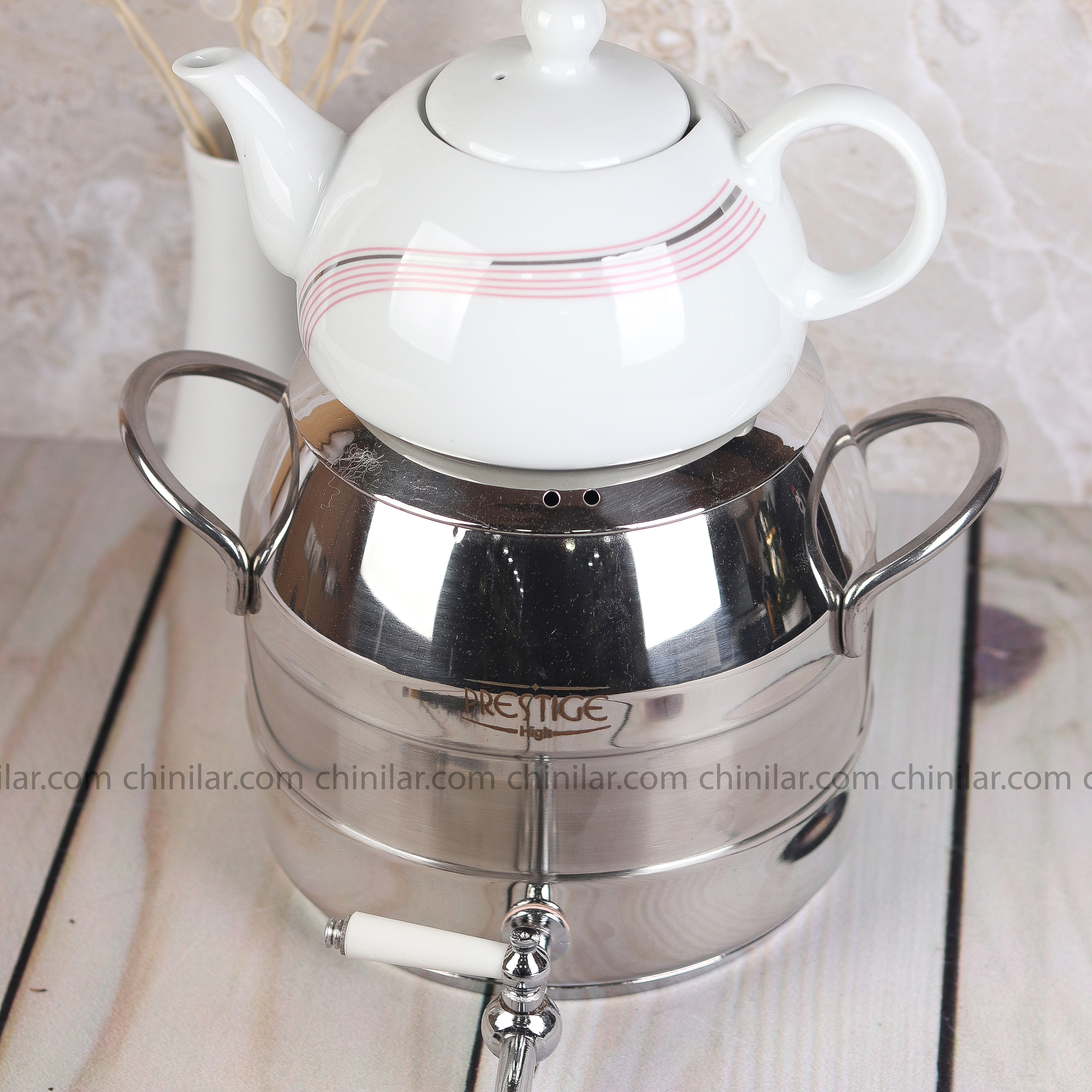 کتری و قوری استیل پرستیژ طرح ترک 2050 دسته استیل