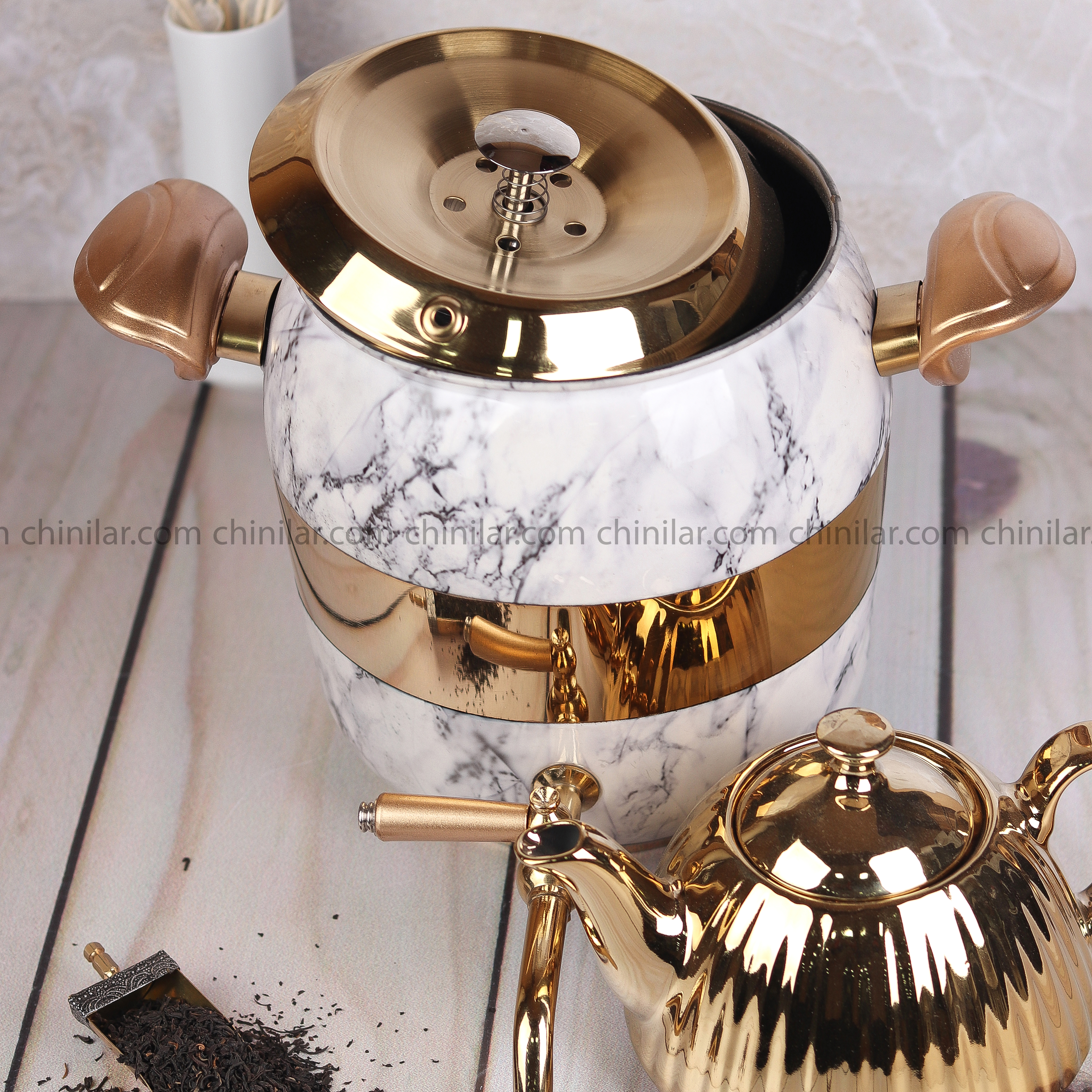 کتری و قوری استیل تیتیل مدل ترک سرامیک طلایی
