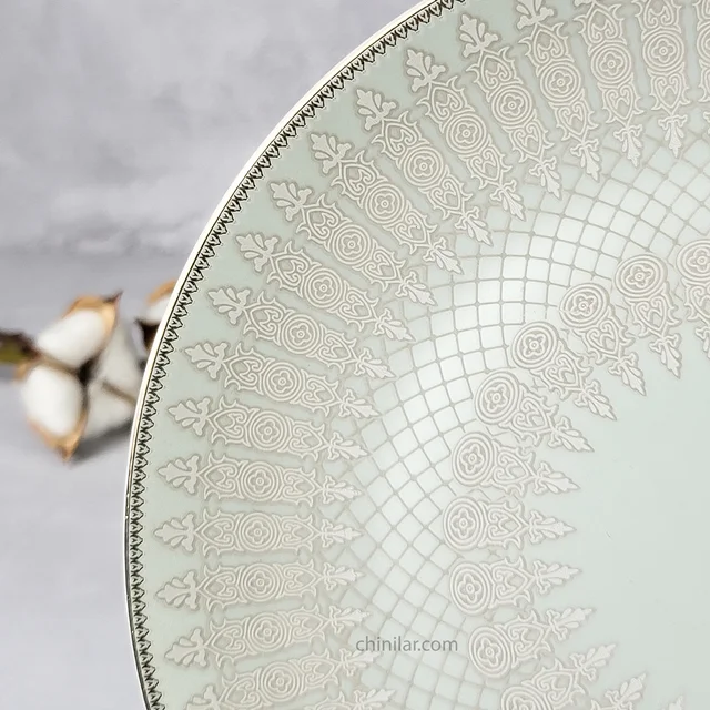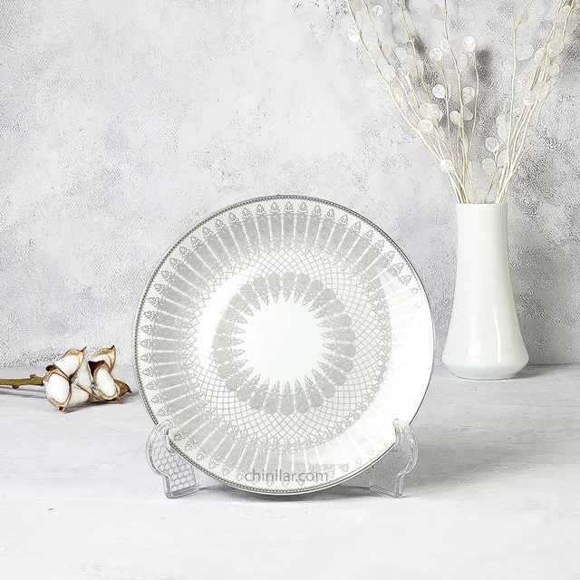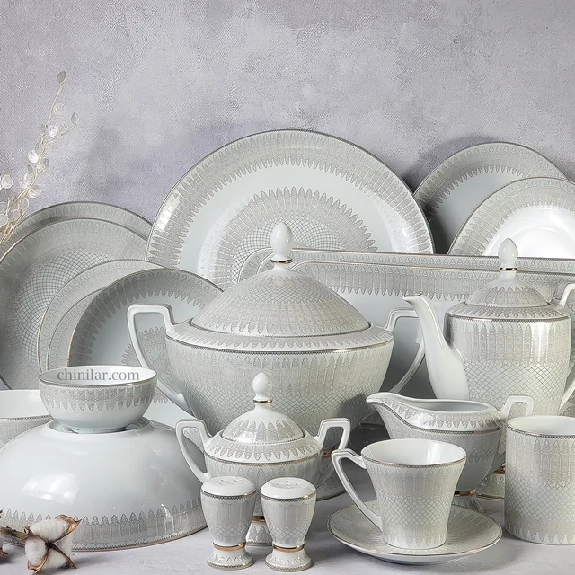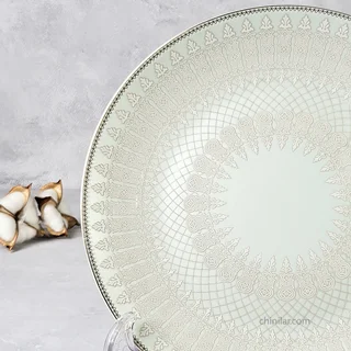 - نکته مهم: عکس آخر صرفاً برای نمایش سرویس کامل است. برای مشاهده و سفارش سایر اقلام این طرح، میتوانید به سایت چینیلر قفسه چینی لورین طرح غزل در فروشگاه ما مراجعه کنید. این پیش دستی علاوه بر زیبایی، کاربردی بوده و انتخابی عالی برای دکوراسیون میز غذاخوری شما هستند.